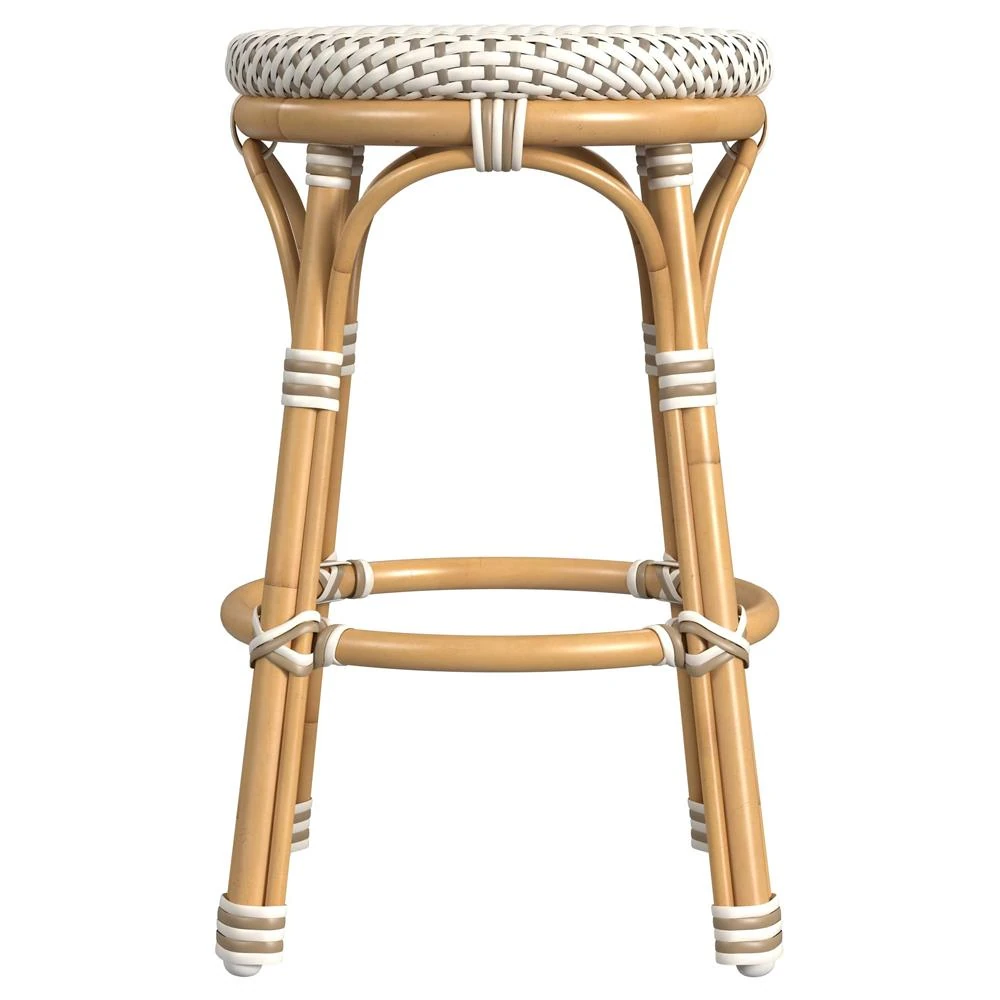 Lily French Country Beige White Woven Rattan Outdoor Backless Counter Stool