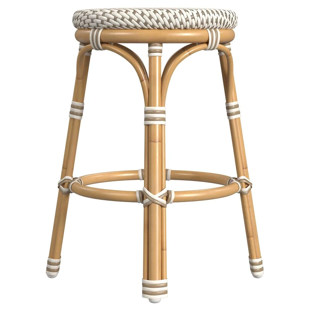 Lily French Country Grey White Woven Rattan Outdoor Backless Counter Stool