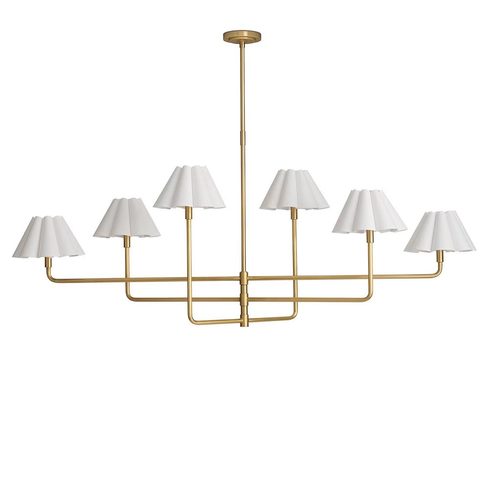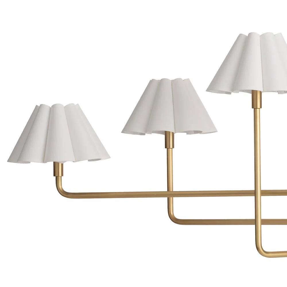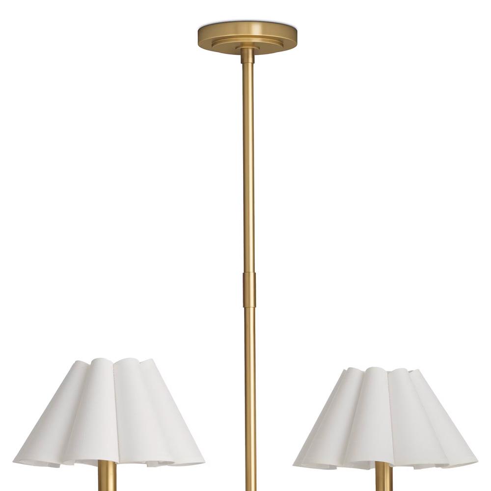 Polly French White Scalloped Linen Shade Natural Brass Chandelier