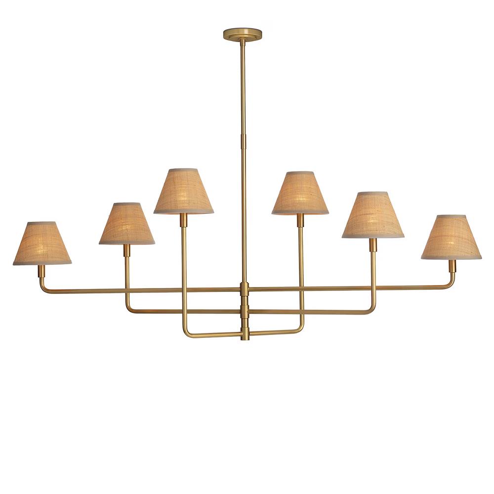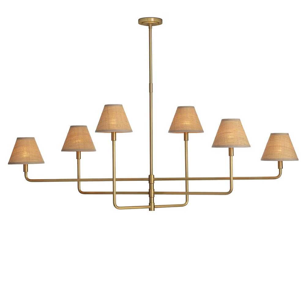 Polly Coastal Beach Brown Rattan Shade Natural Brass Chandelier