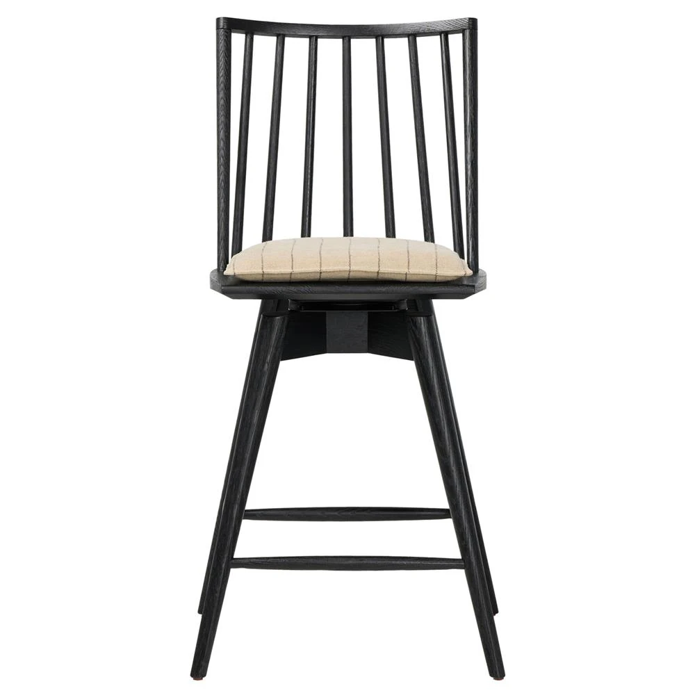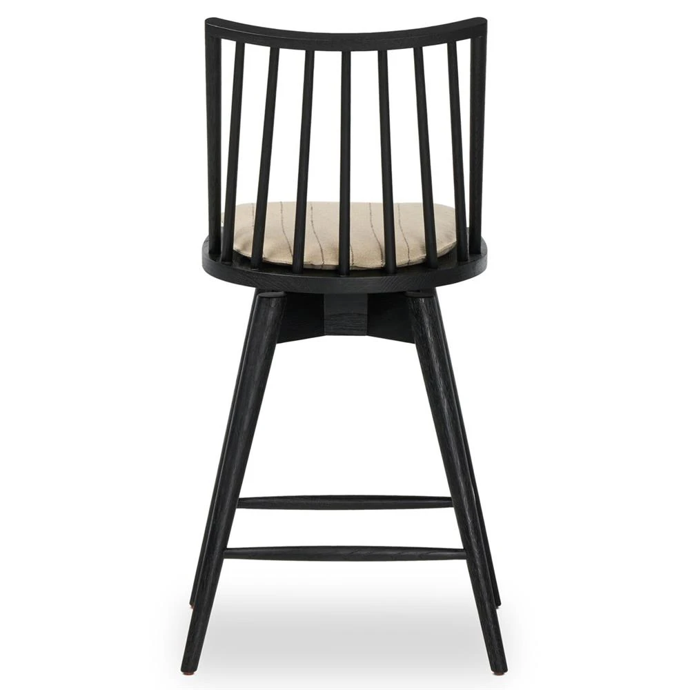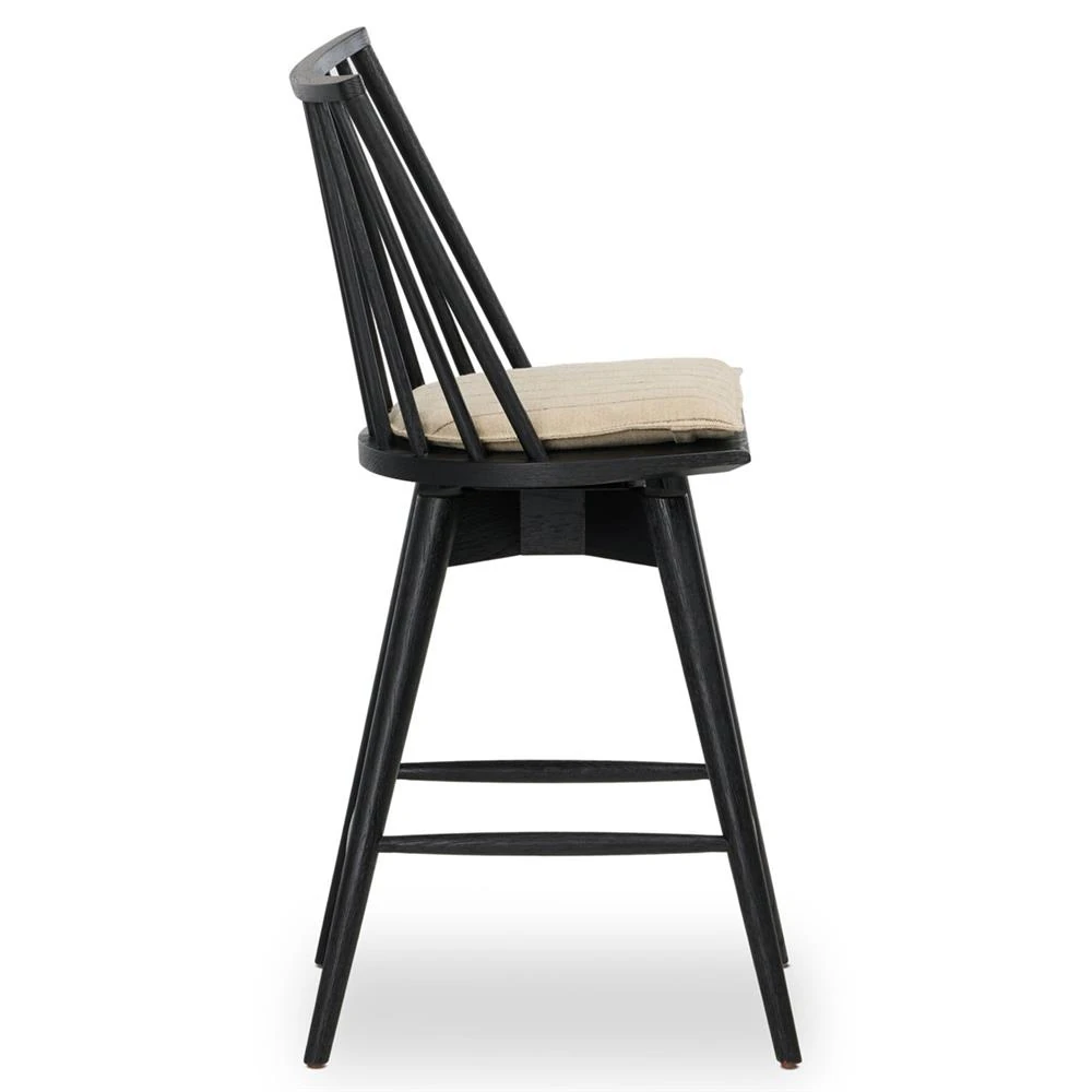 Lara Rustic Lodge Beige Striped Black Oak Swivel Windsor Counter Stool