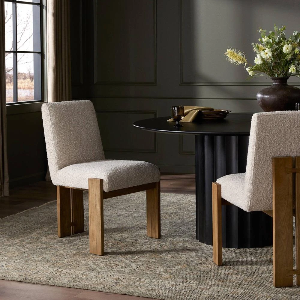 • Tobin Updated Traditional Off White Upholstered Brown Wood Dining Chair|Kathy Kuo Home