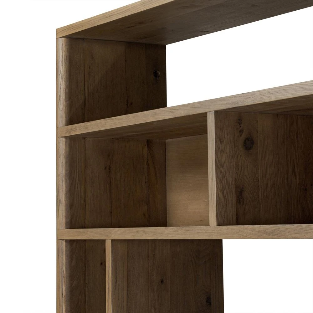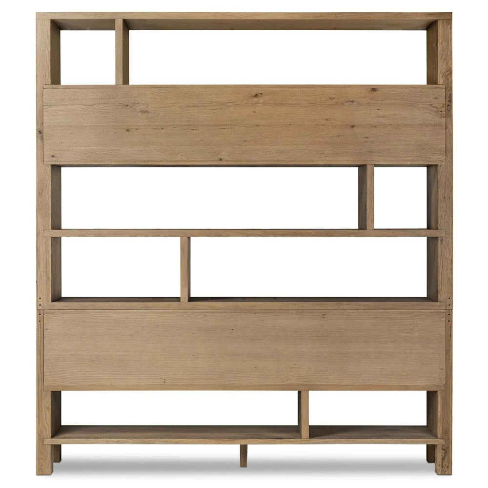 Arwen Updated Traditional Brown Reclaimed Pine Wood Double Bookcase