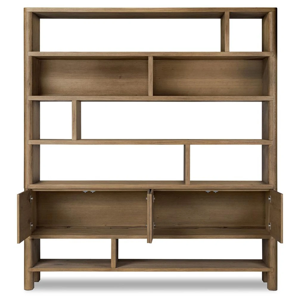 • Avaline Updated Traditional Brown Reclaimed Pine Wood Double Arched Bookcase|Kathy Kuo Home