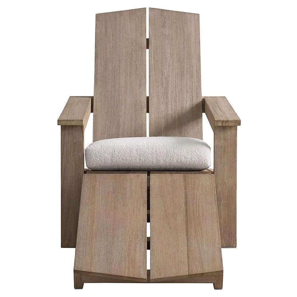 • Sophia Coastal Beach Off White Boucle Brown Teak Outdoor Dining Arm Chair|Kathy Kuo Home