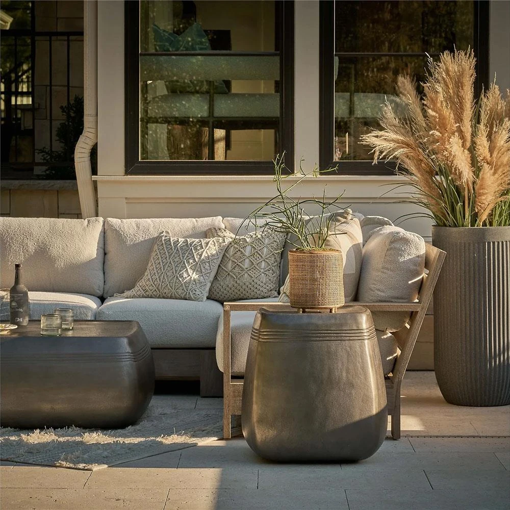 • Oberlin Modern Classic Beige Concrete Outdoor End Table|Kathy Kuo Home