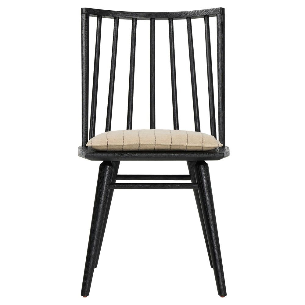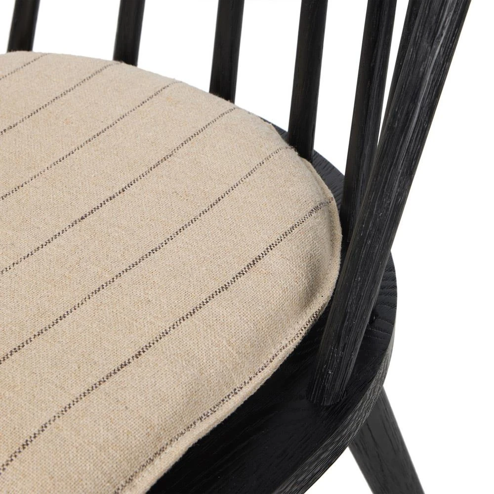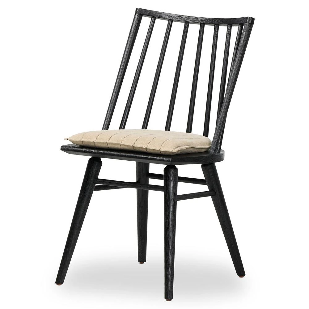 Lara Rustic Lodge Beige Striped Black Oak Windsor Dining Side Chair