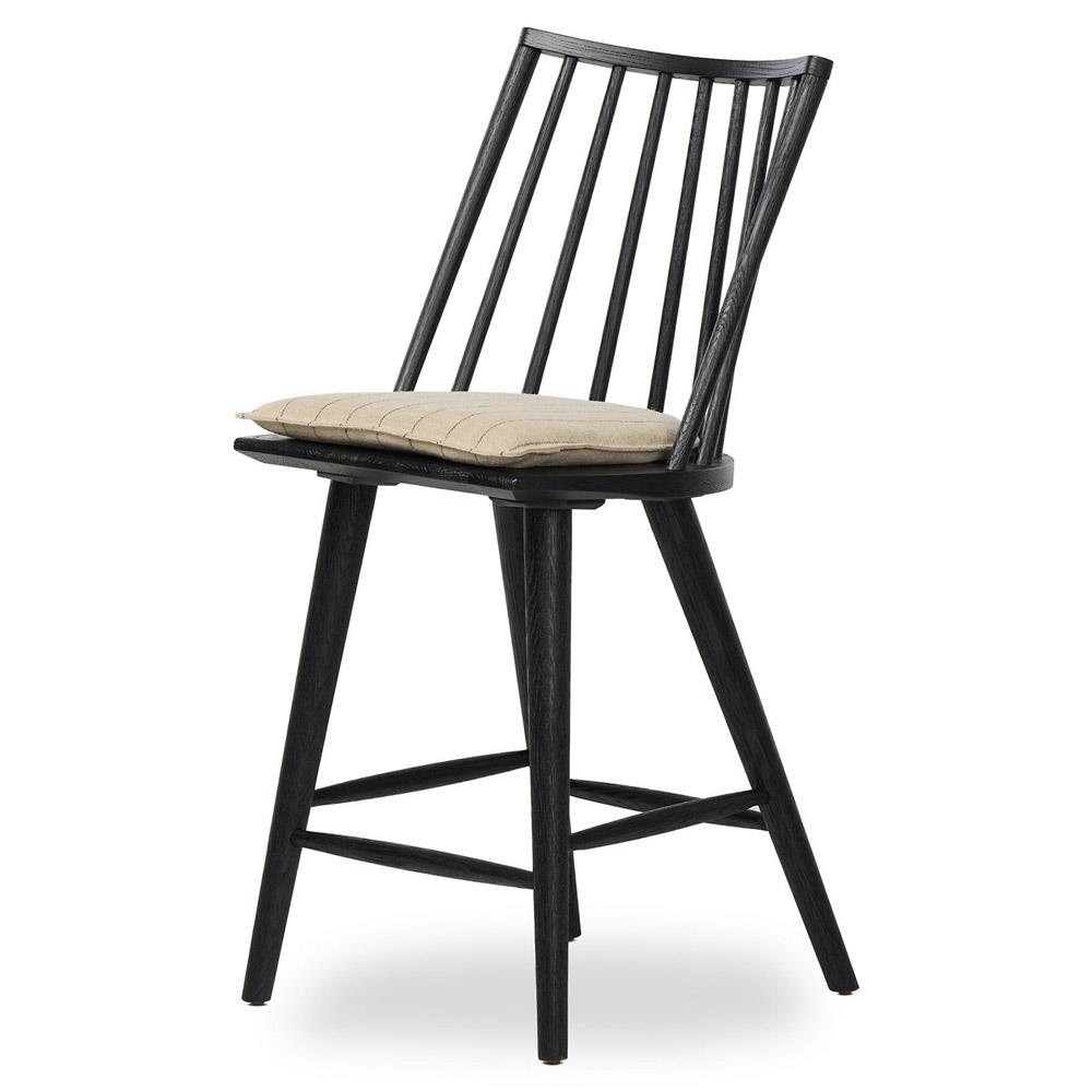 Lara Rustic Lodge Beige Striped Black Oak Windsor Counter Stool