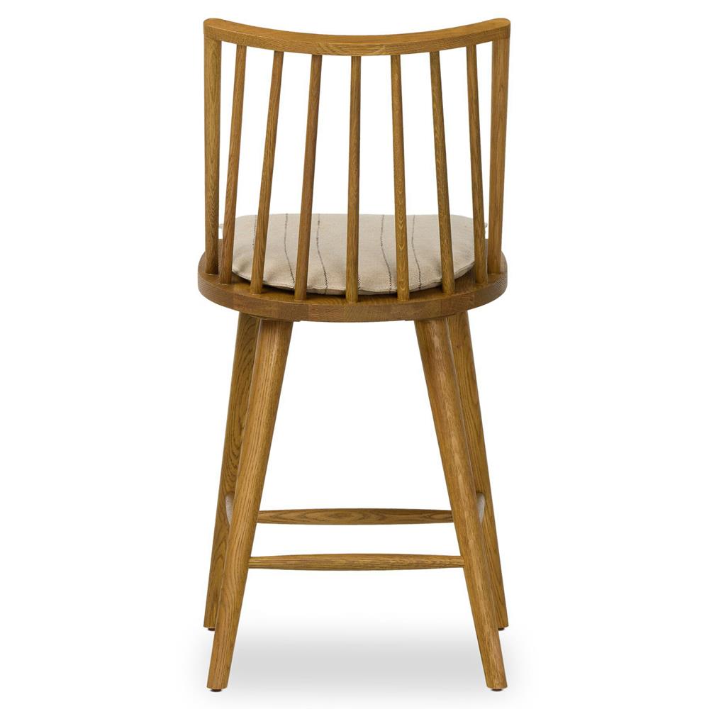 Lara Rustic Lodge Beige Striped Brown Oak Windsor Counter Stool