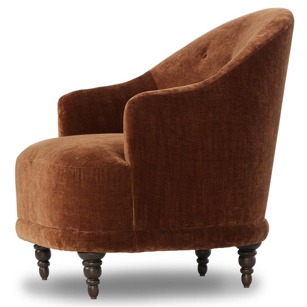 • Hadley Rustic Brown Leather Wood Tufted Occasional Arm Chair|Kathy Kuo Home