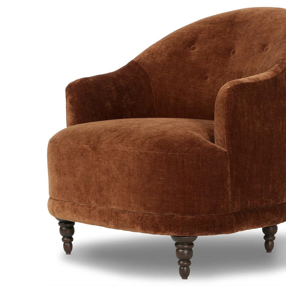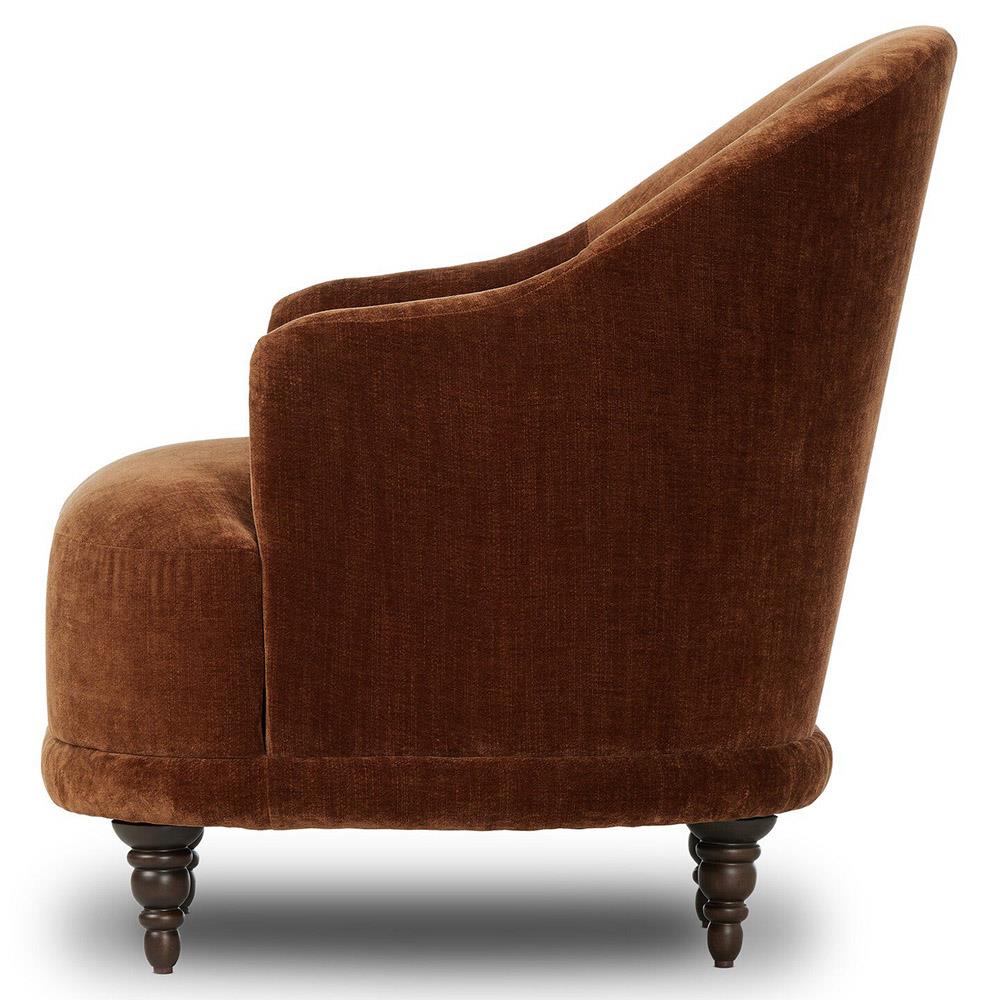 • Upholstered in sienna velvet fabric. Fabric content: 100% polyester; Filling in body: 90% polyurethane foam pad and 10% polyester fiber batting; Rub count: 50,000