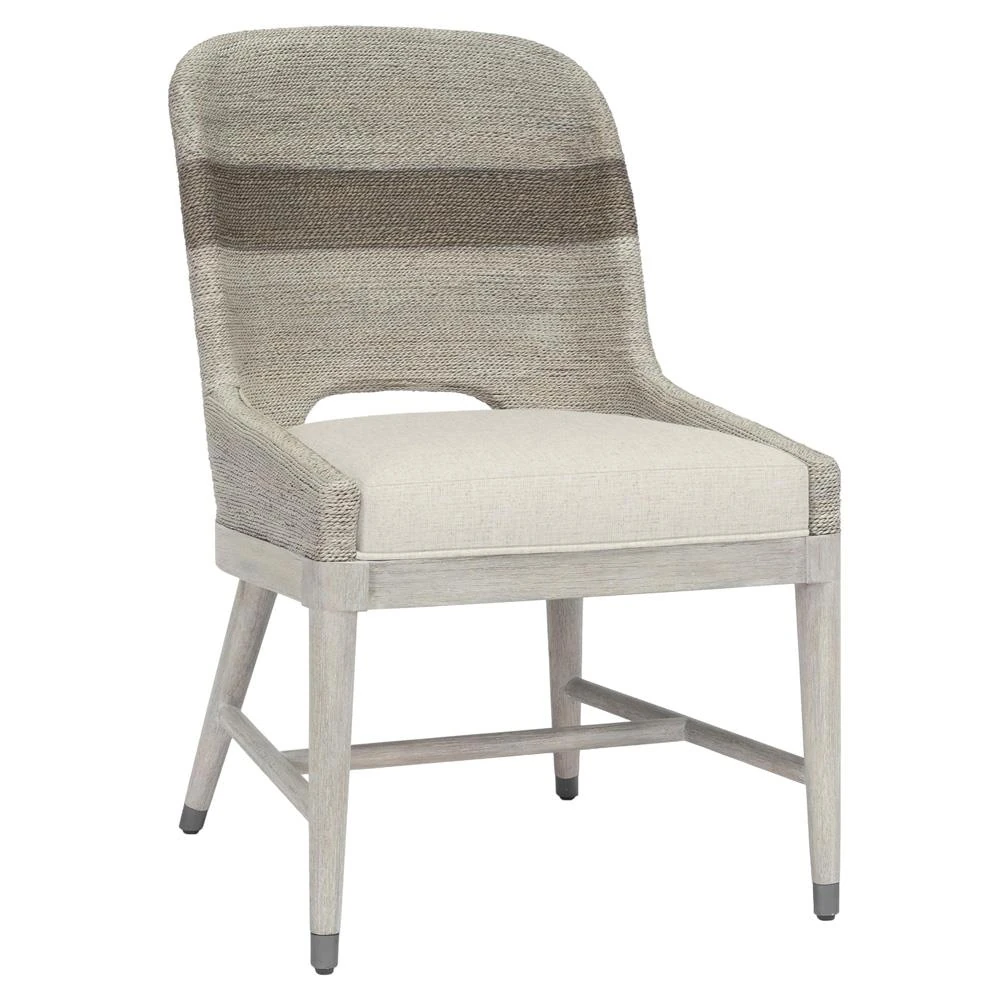 Palecek Fritz Coastal Beige Performance Fog White Lampakanai Rope Dining Chair