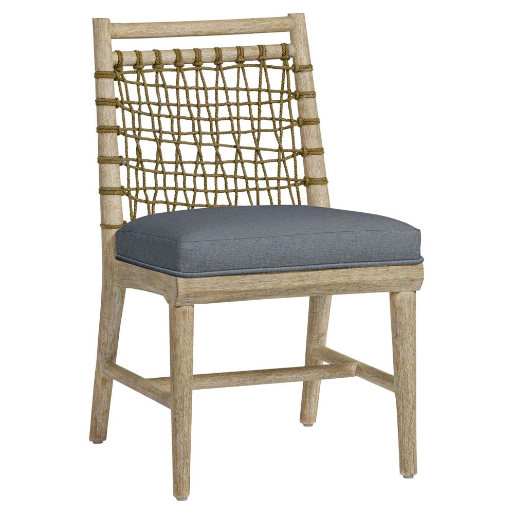 Palecek Pratt Coastal Blue Performance Whitewash Wood Jute Rope Dining Chair