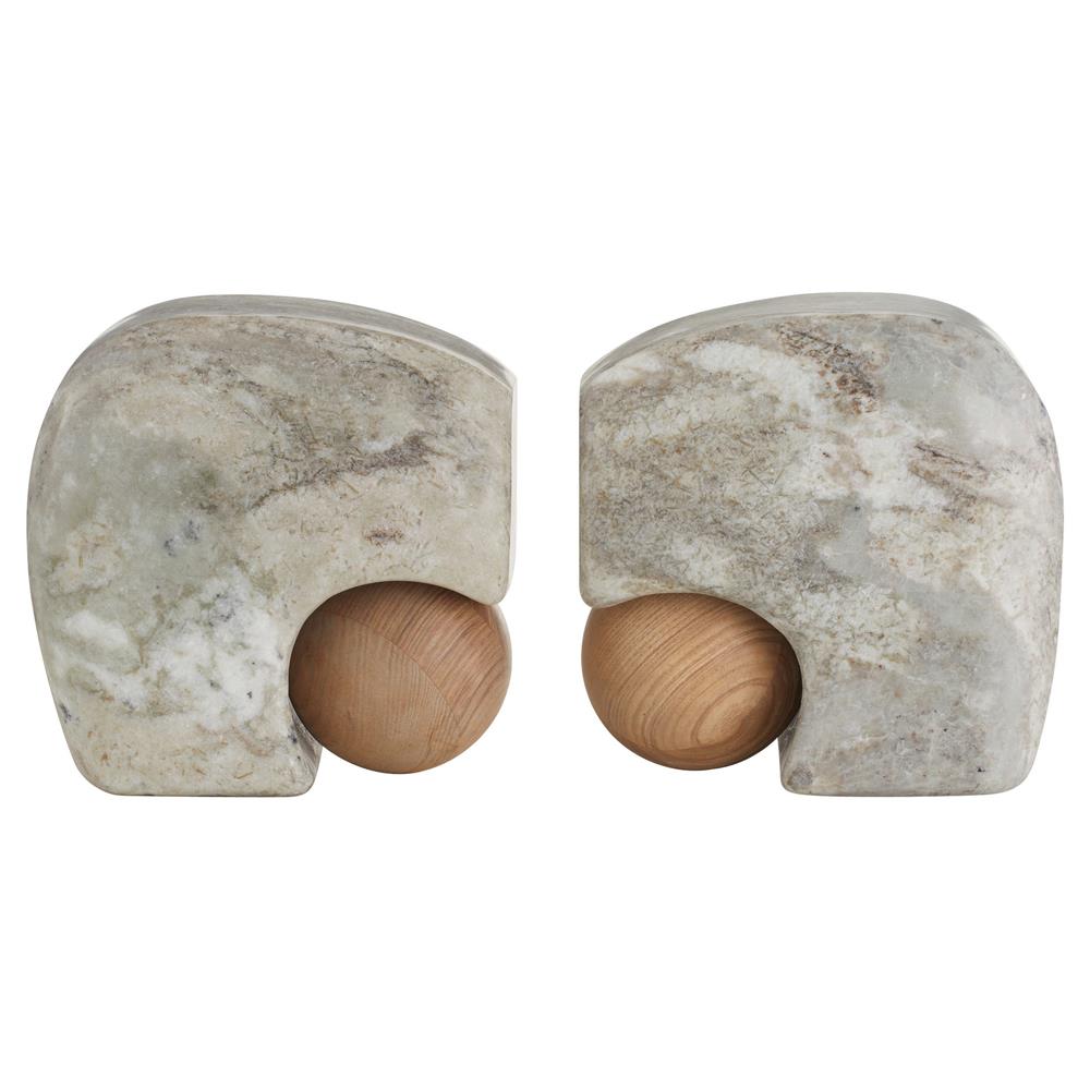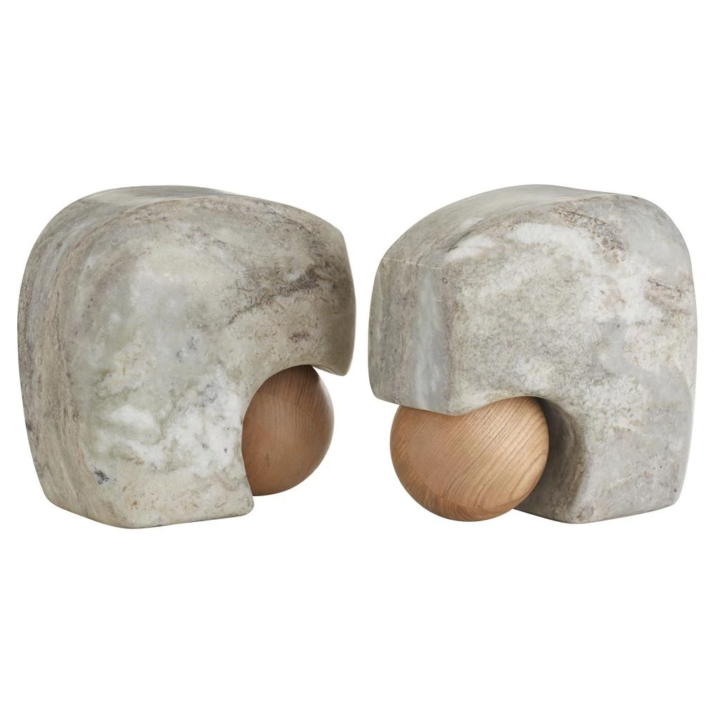 • Conor Coastal Beige Accent Brown Wood Bookends|Kathy Kuo Home