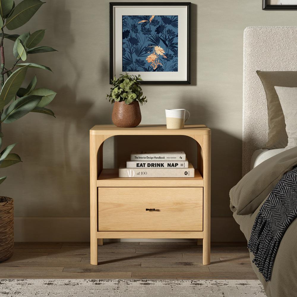 • Sazana Modern Classic White Oak Demilune Nightstand|Kathy Kuo Home