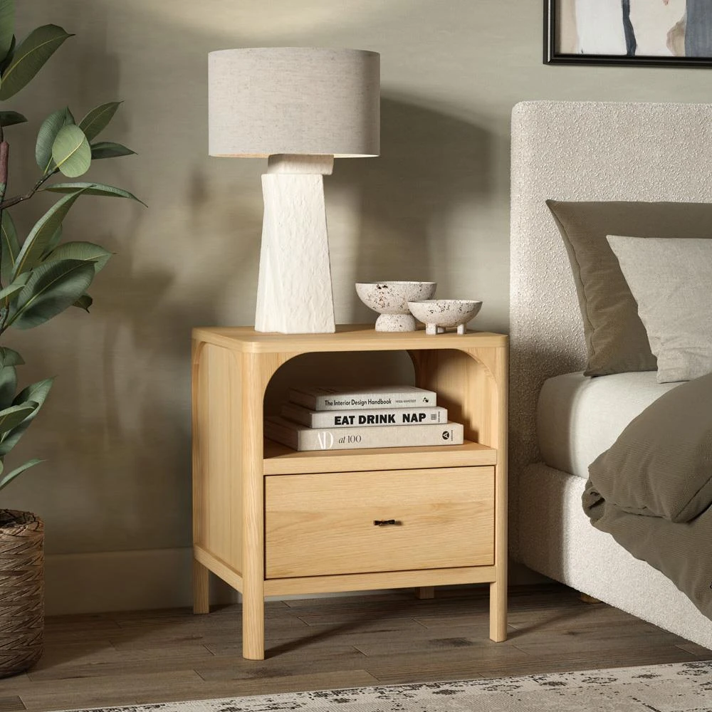 Benedick Modern Classic Sand Beige Oak Wide Nightstand