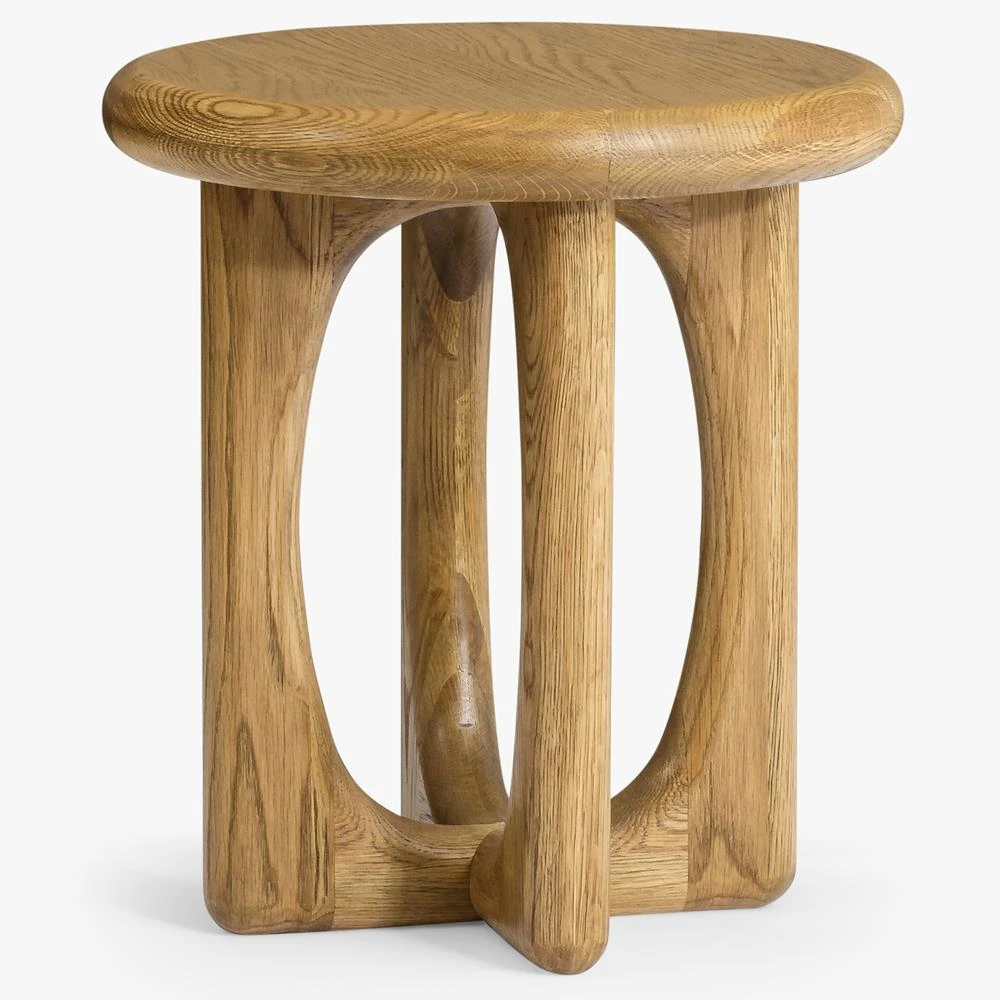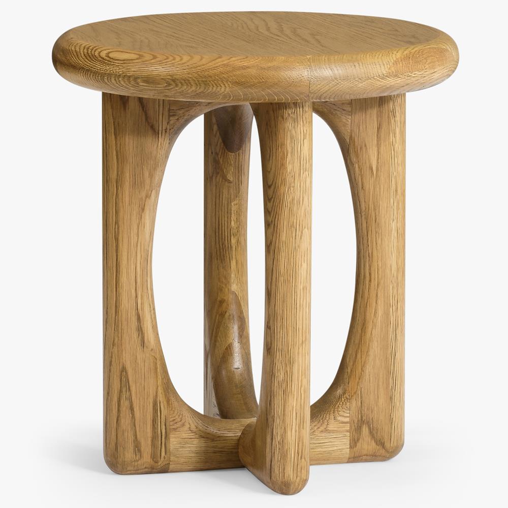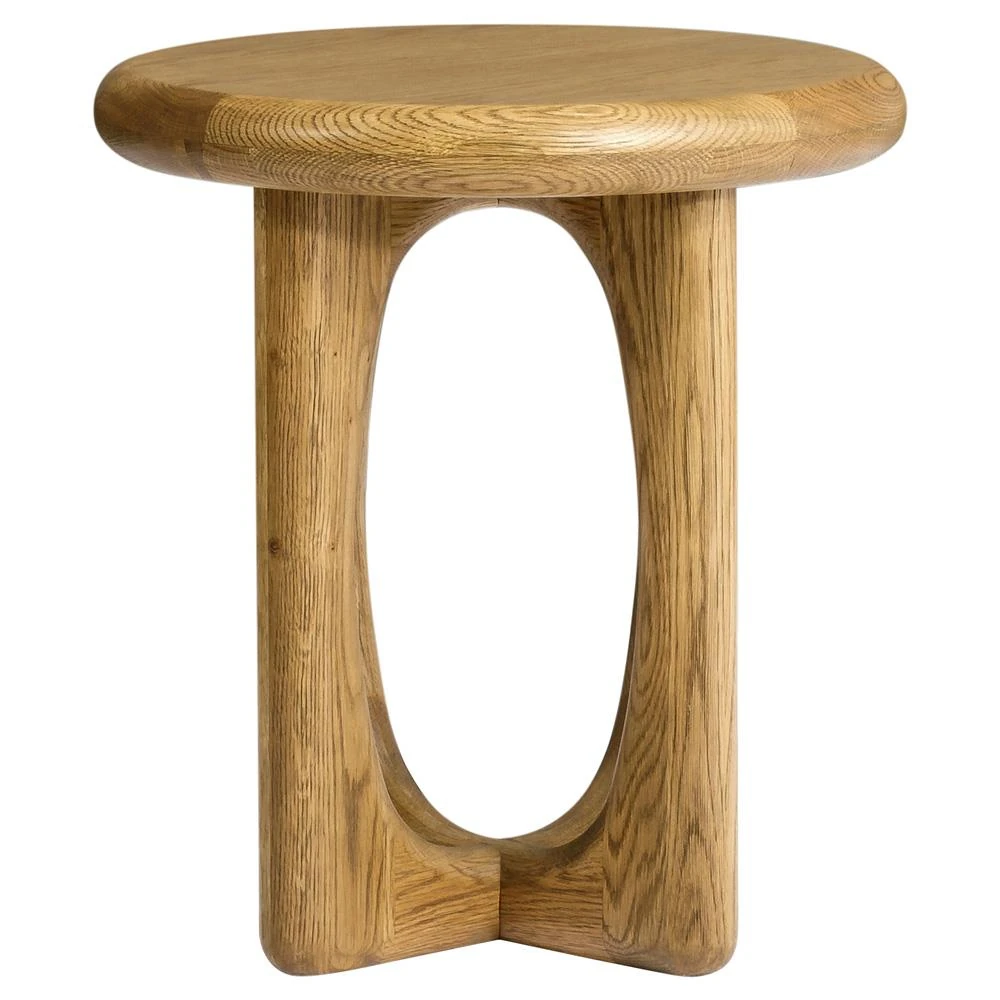 • Zyra Coastal Beach Bleached Brown Elm Wood Round Side Table|Kathy Kuo Home