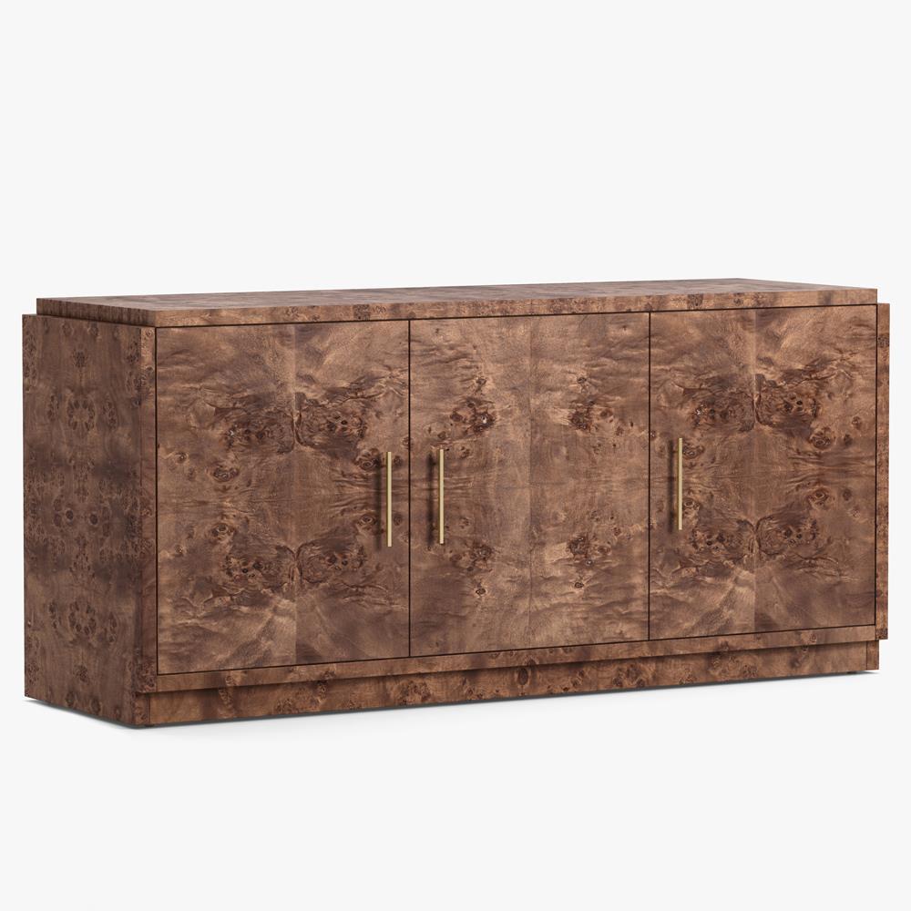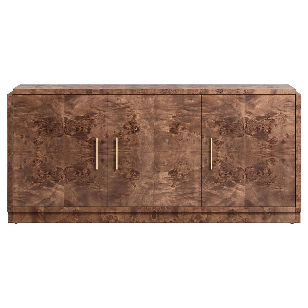 Briella Modern Classic Dark Brown Burl Wood 3 Door Sideboard