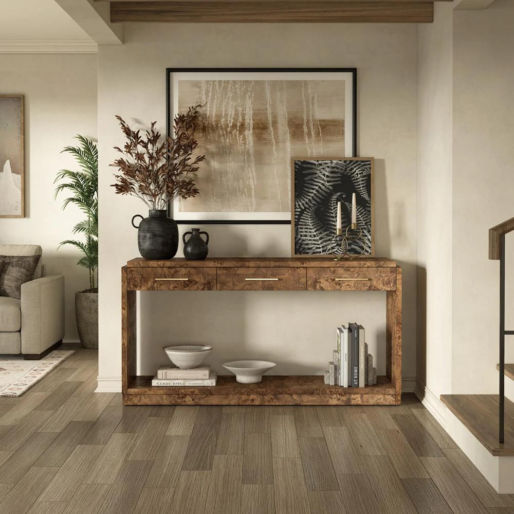 Renz Modern Classic Brown Burl Console Table