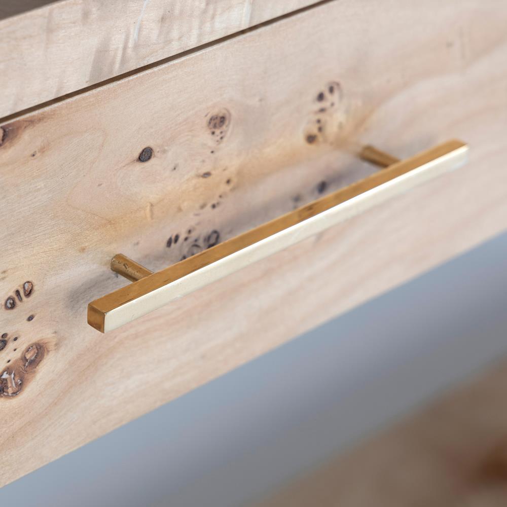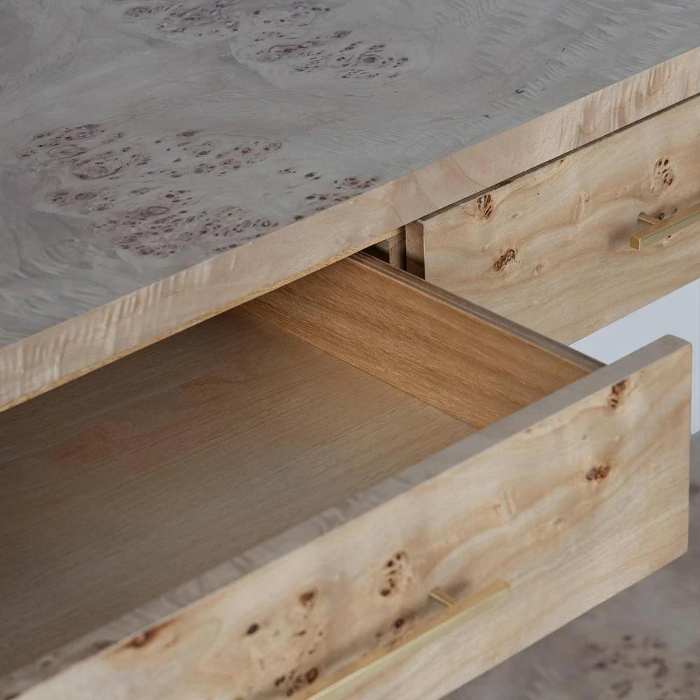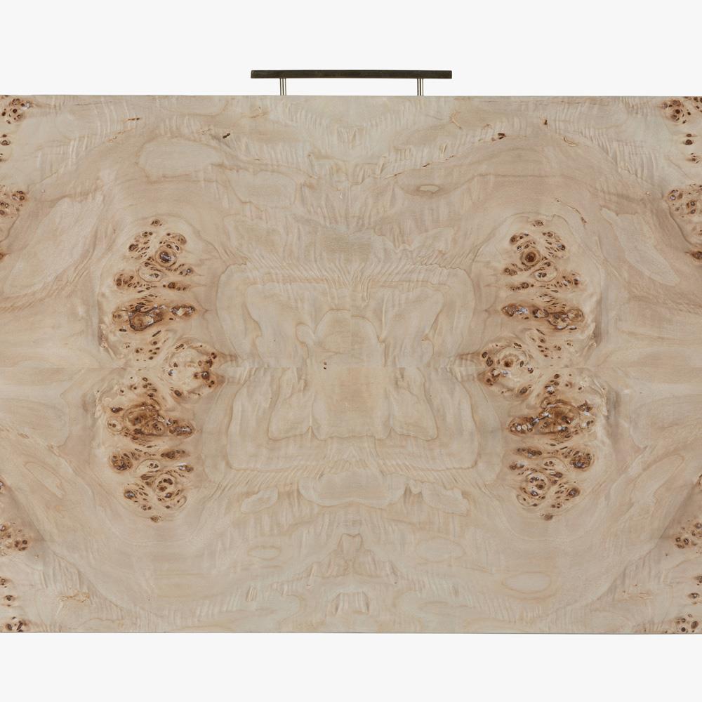• Finished in light brown burl and brass