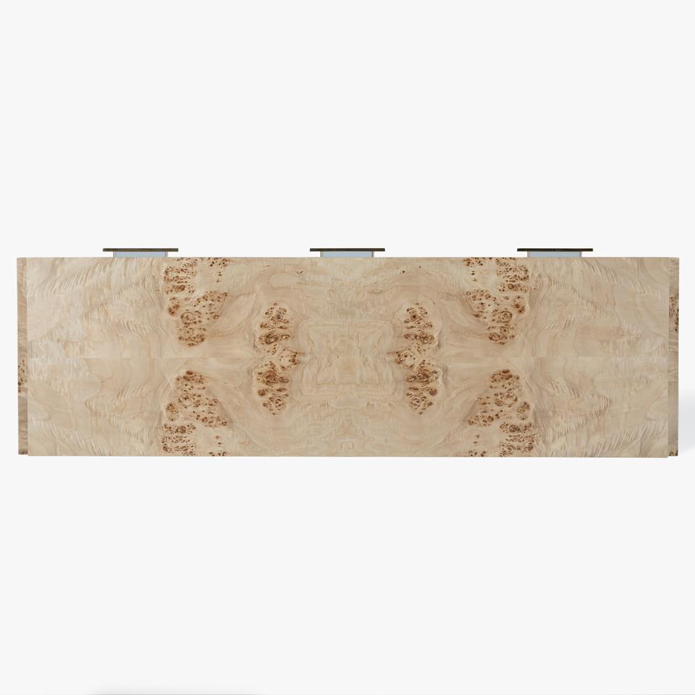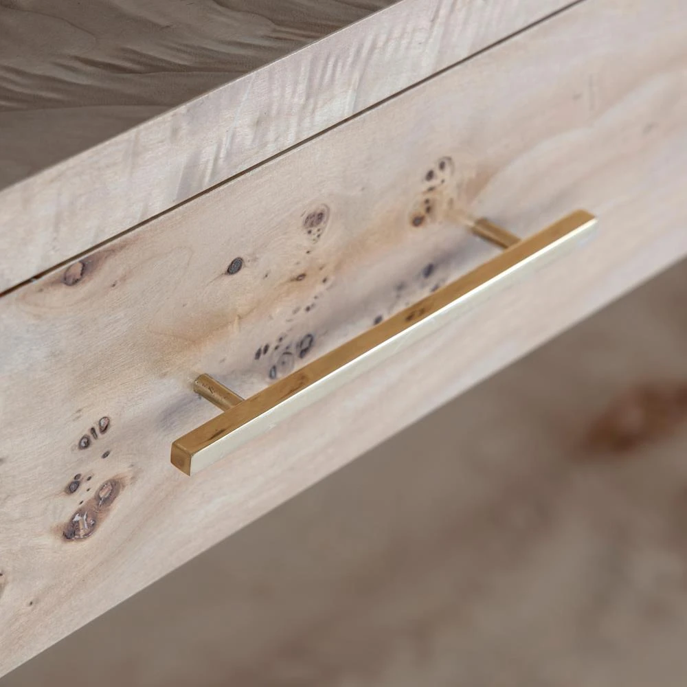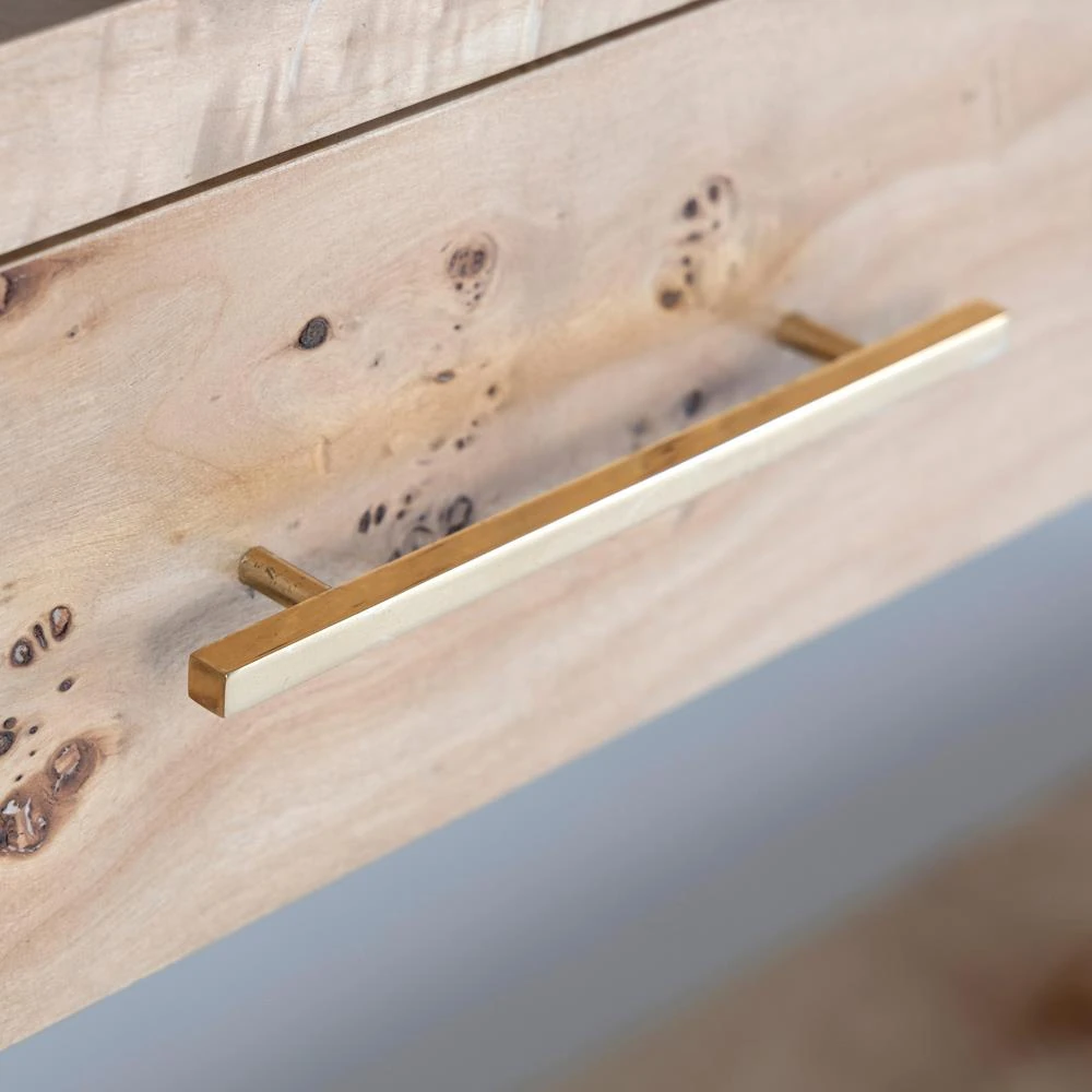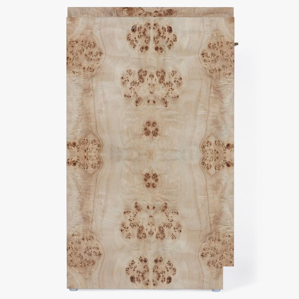 • Finished in light brown burl and brass