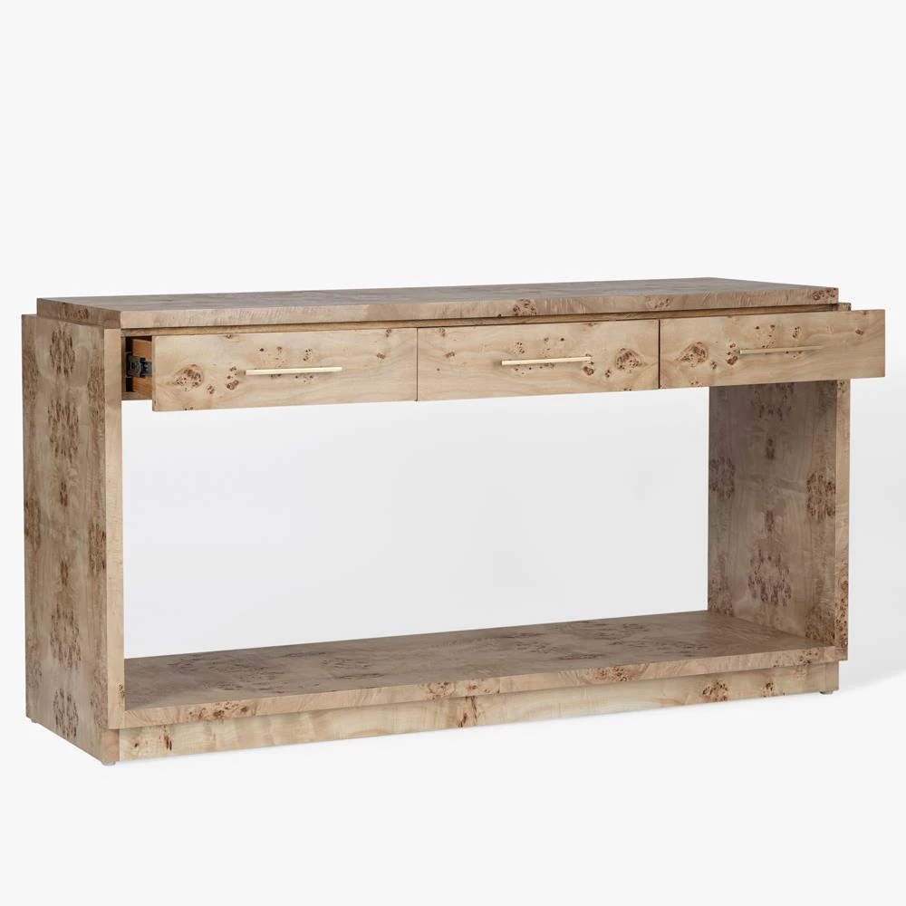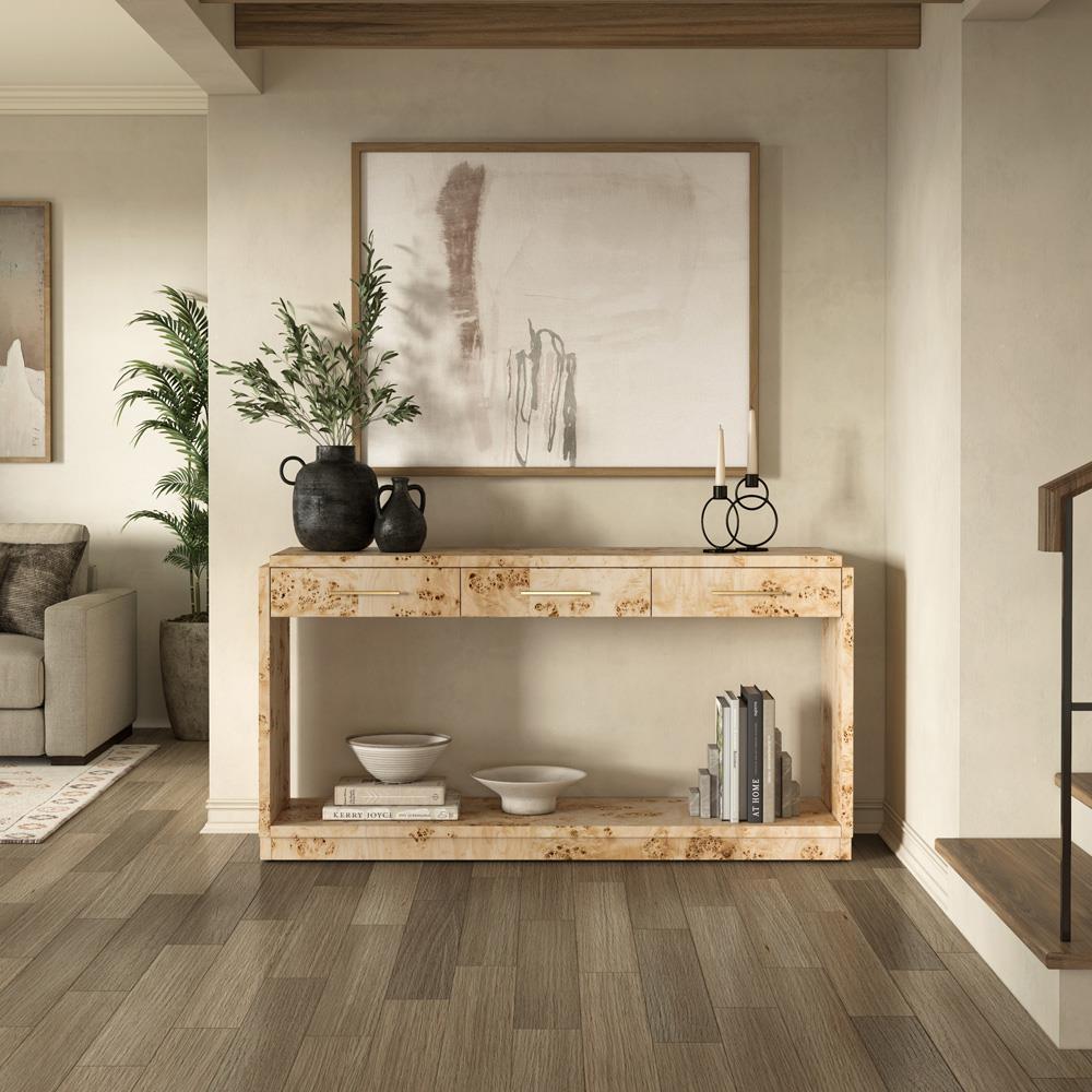 Briella Modern Classic Light Brown Burl Wood Console Table
