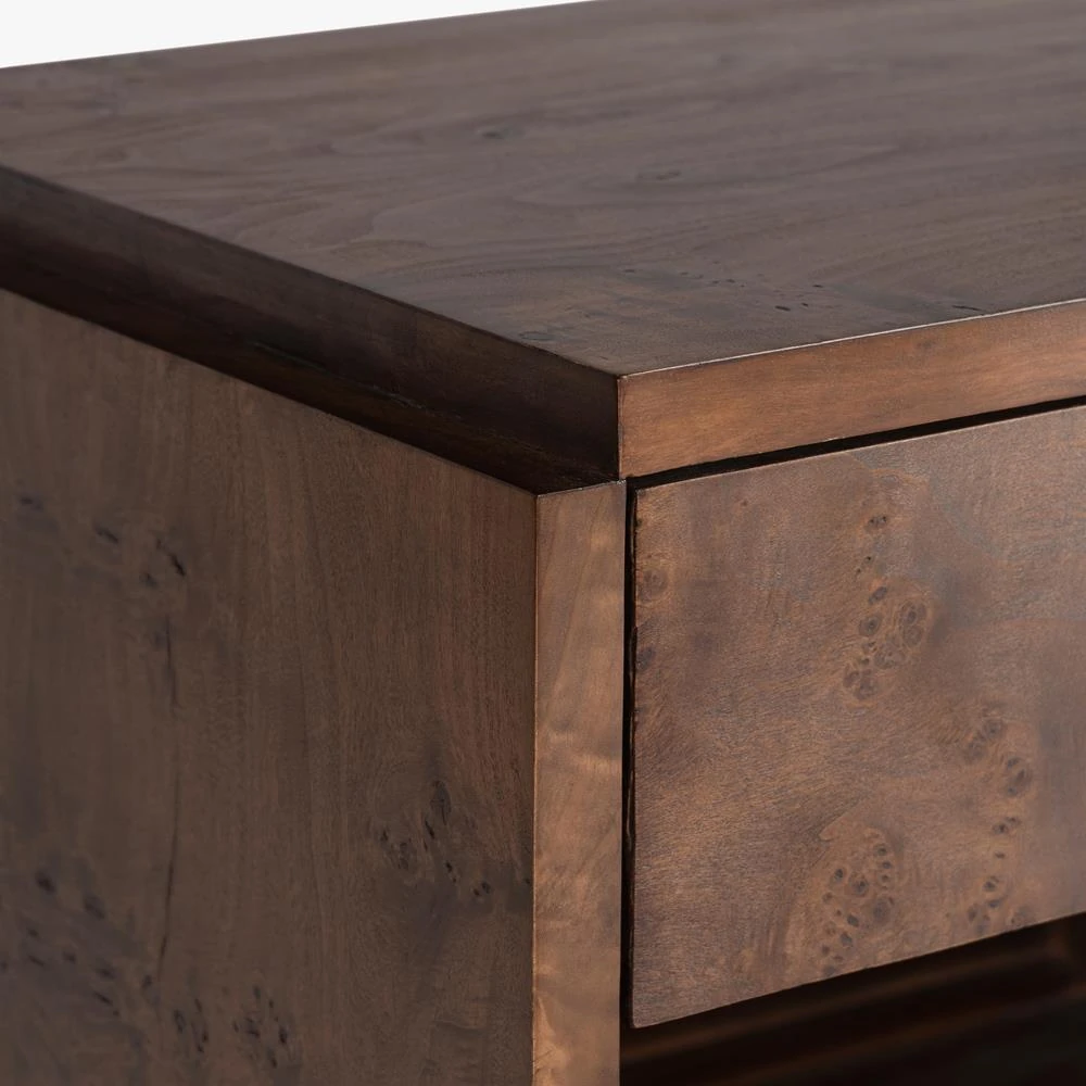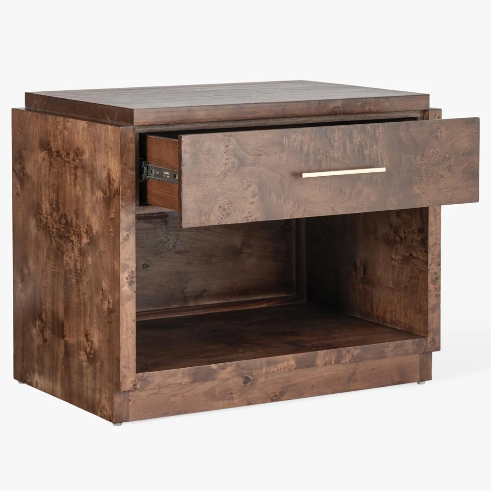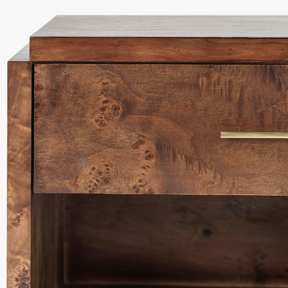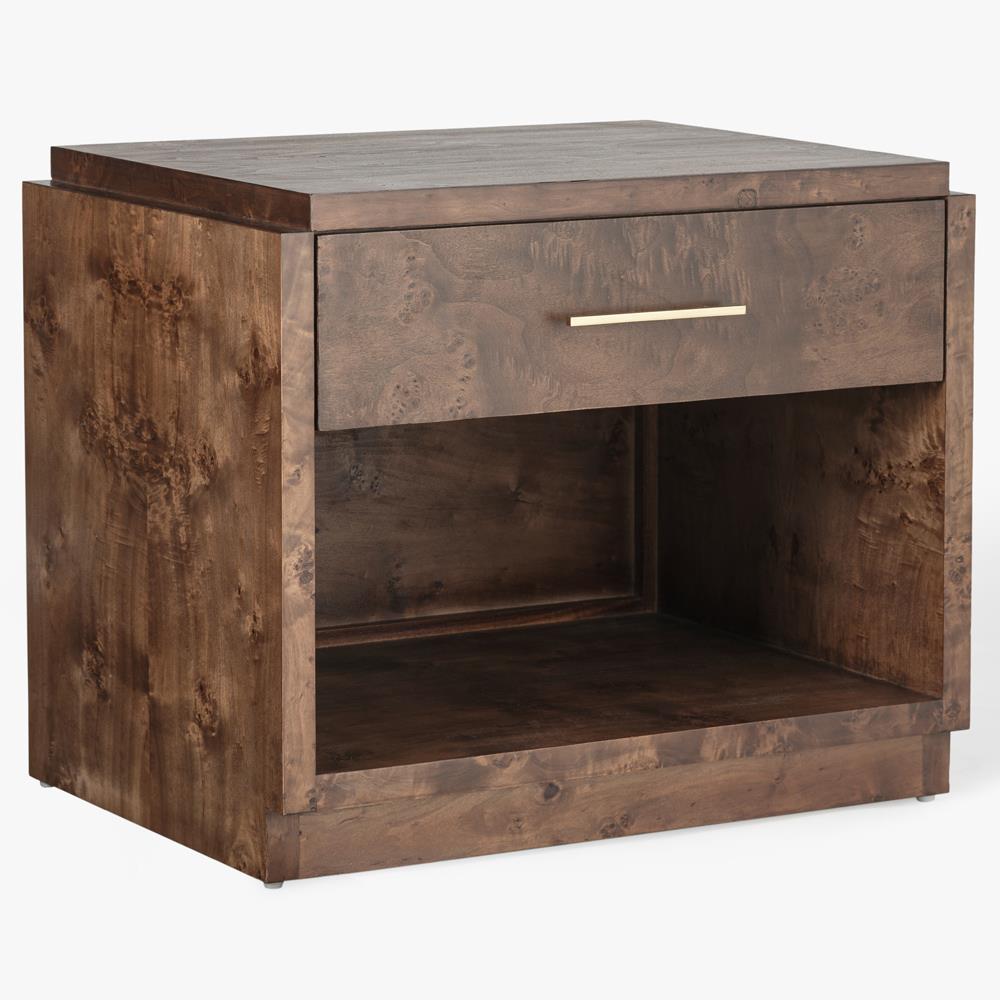 Kenzo Modern Classic Brown Burl Wide Nightstand