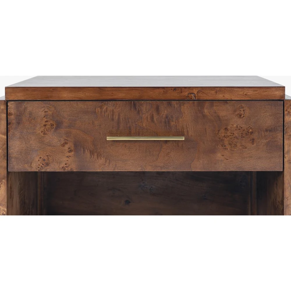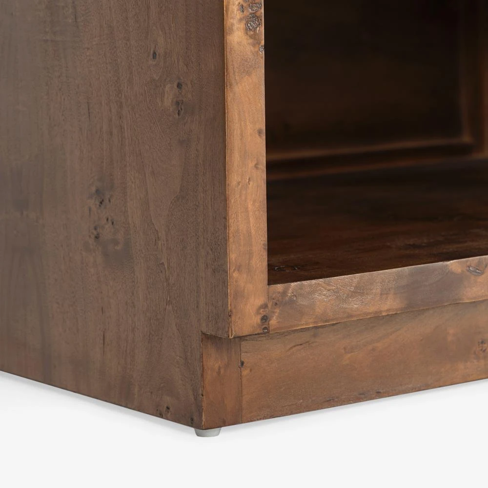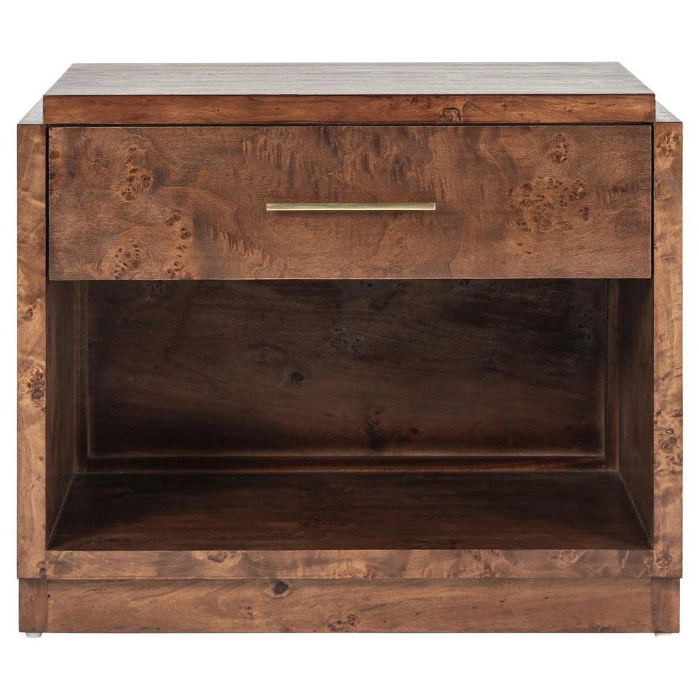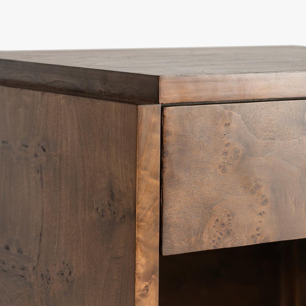 Kenzo Modern Classic Brown Burl Wide Nightstand