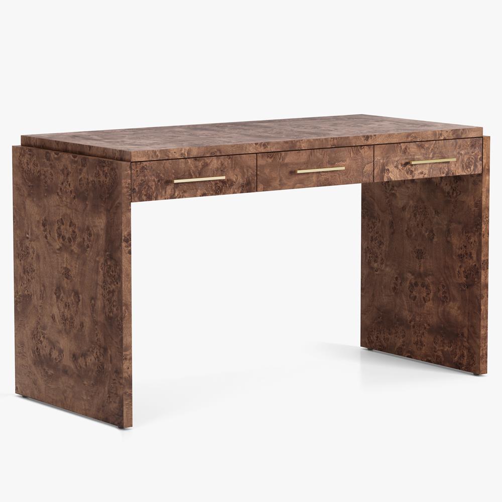• Lowen Modern Classic Brown Burl Wood Curved Desk|Kathy Kuo Home