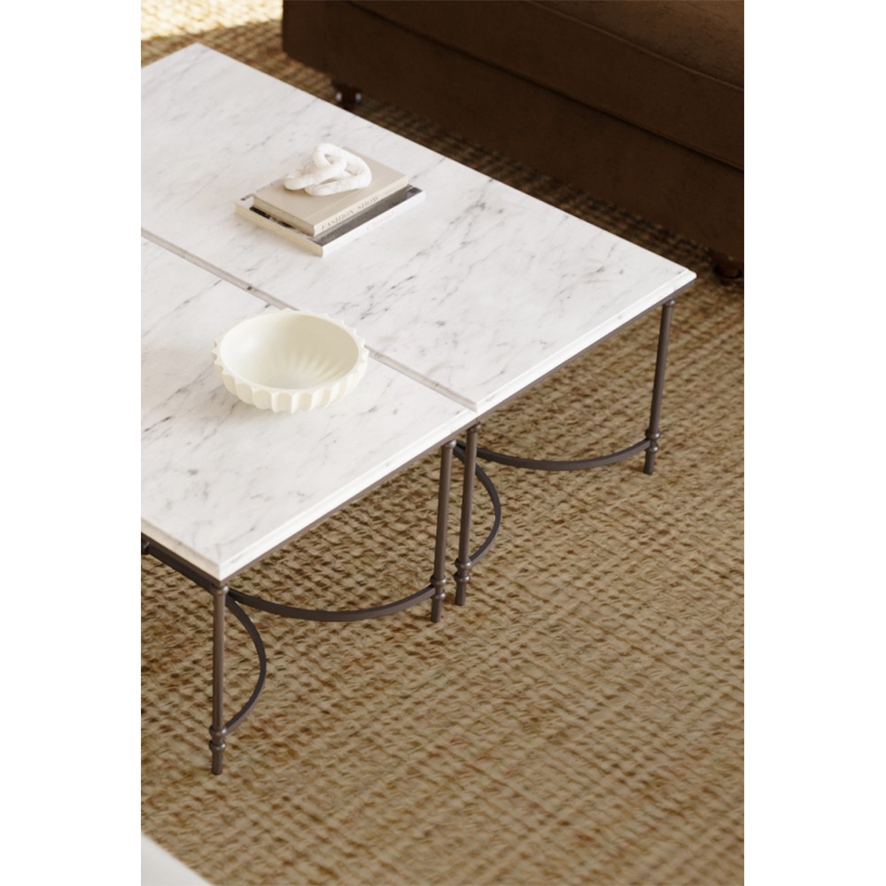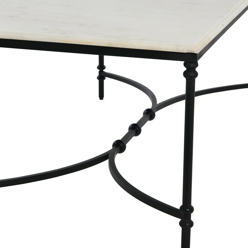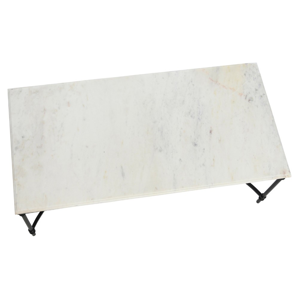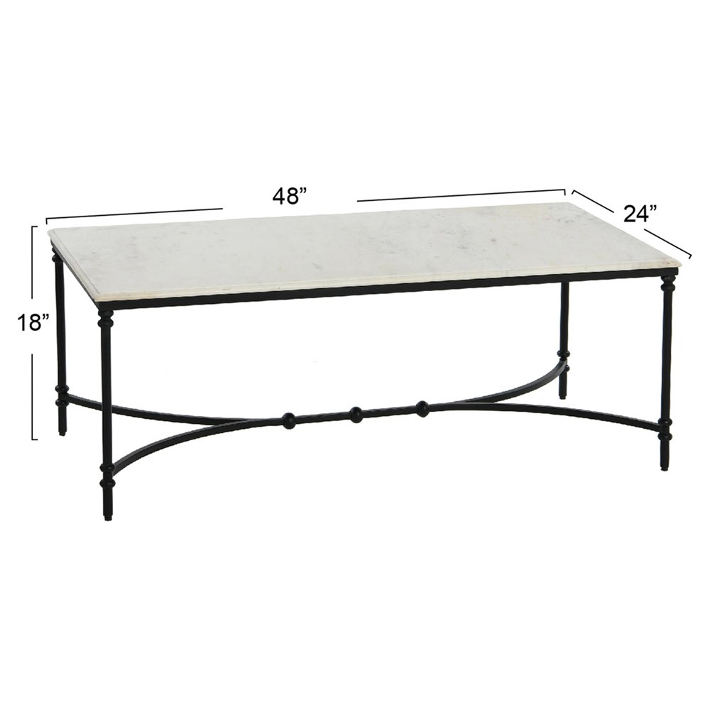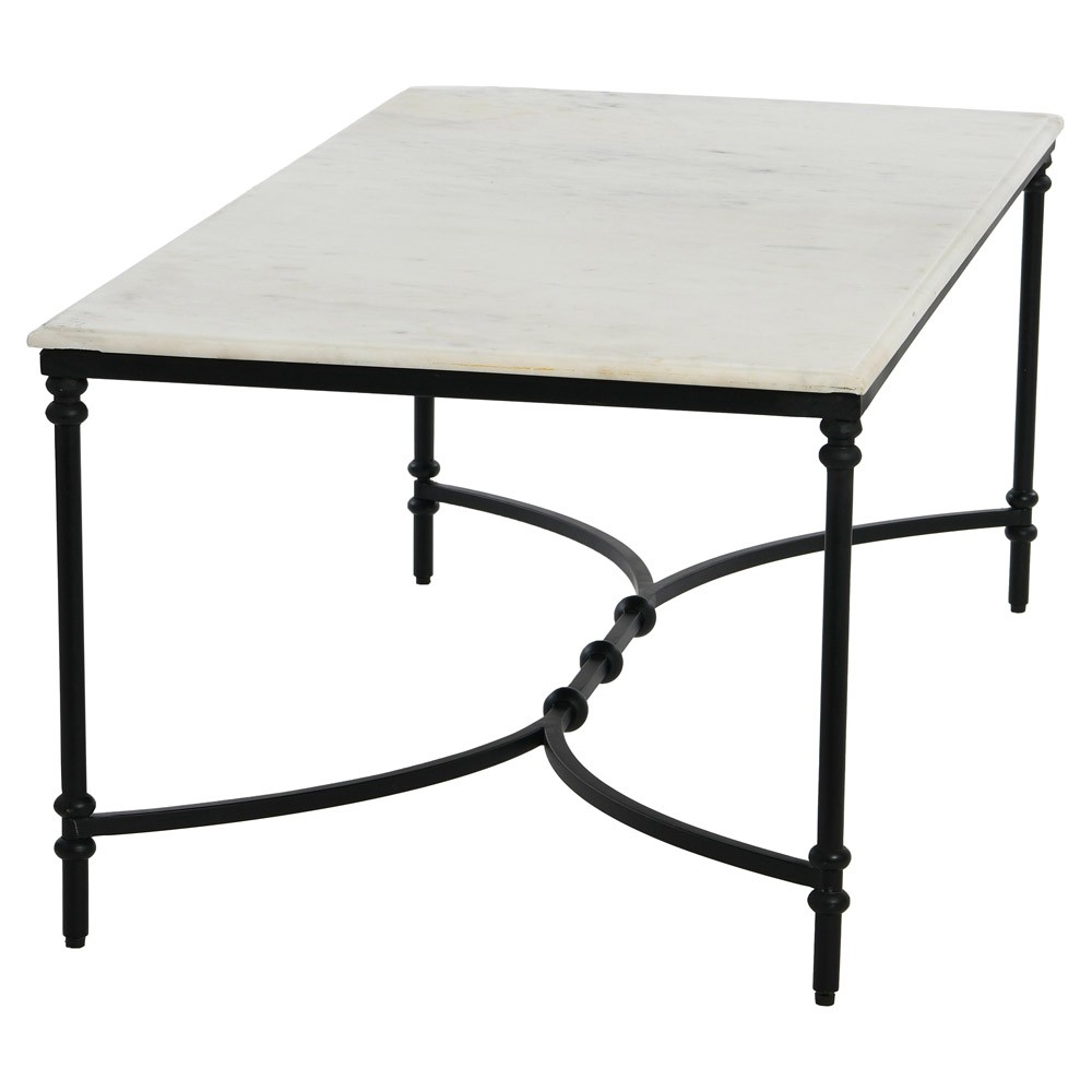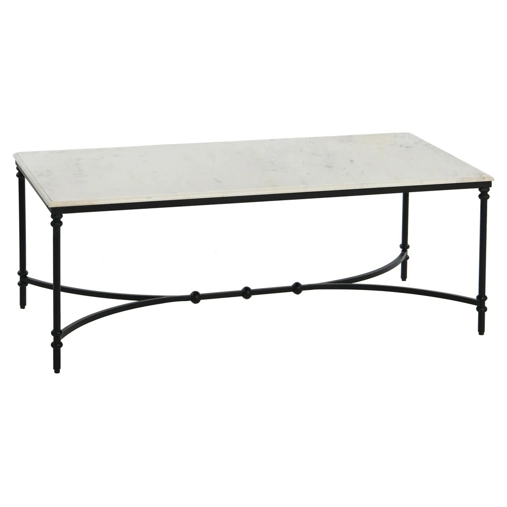 Rhea French Country White Marble Black Metal Rectangular Coffee Table