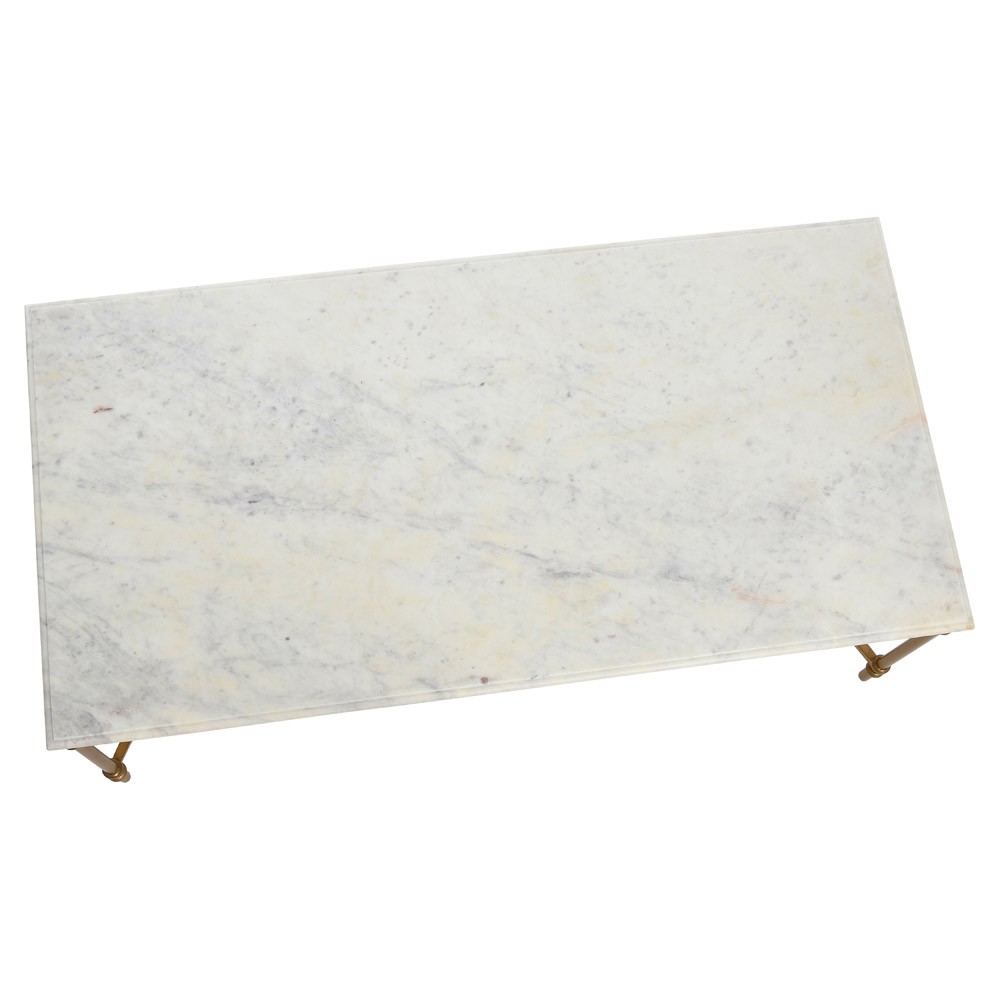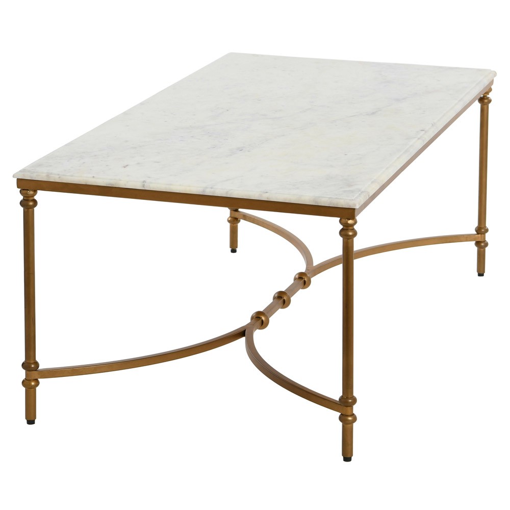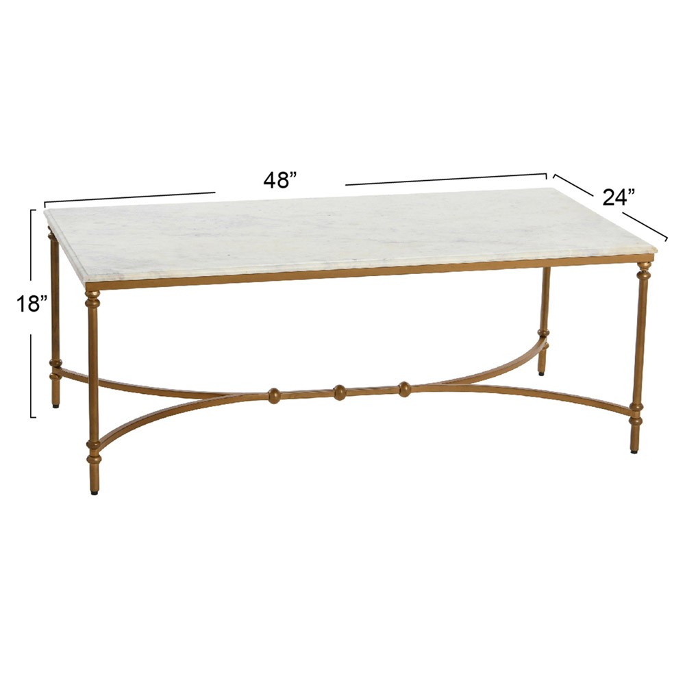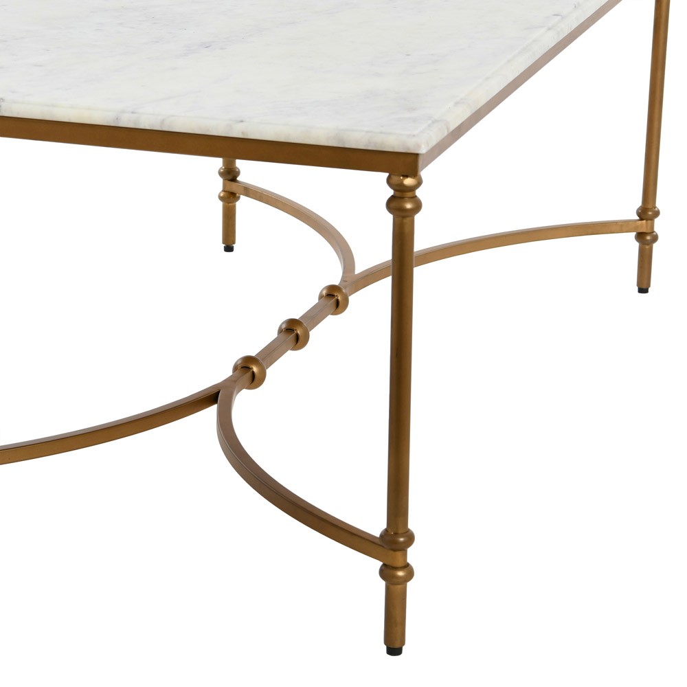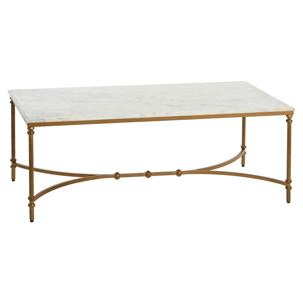 Rhea French Country White Marble Gold Metal Rectangular Coffee Table