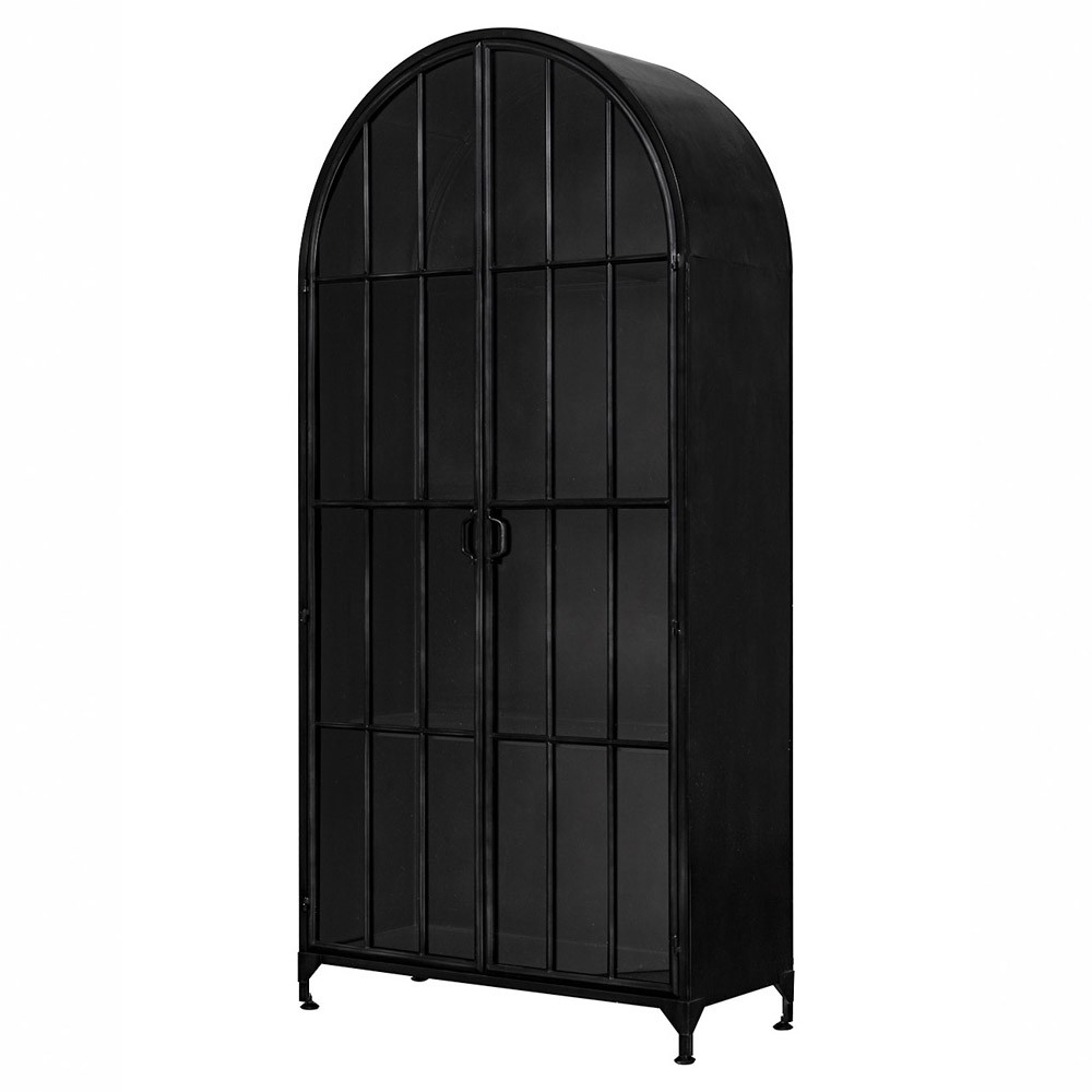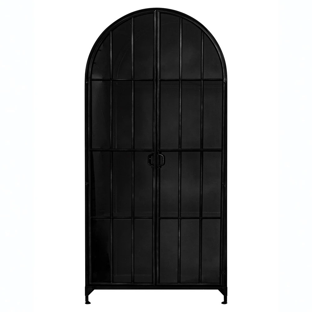 Stancil Industrial Matte Black Iron Frame Clear Glass Door Wide Arch Display Case