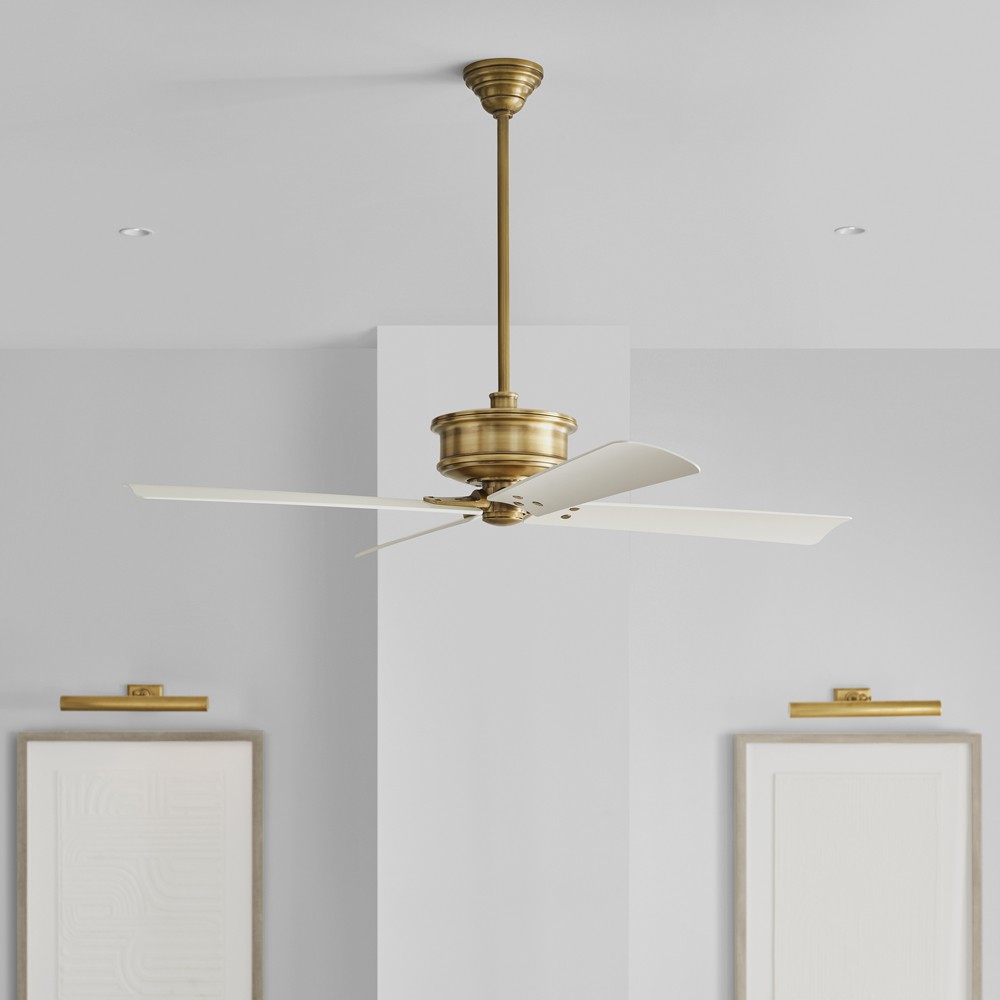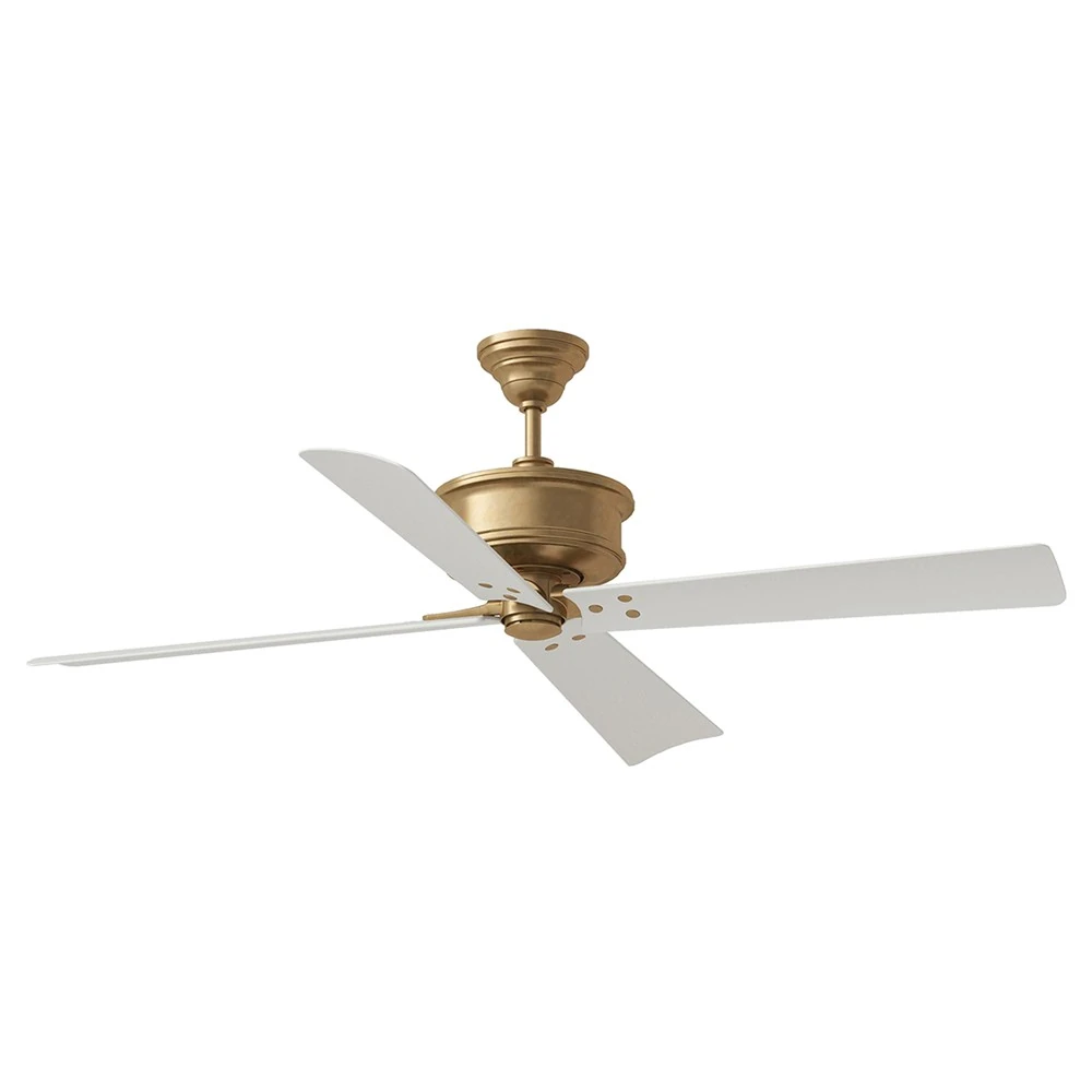 • Visual Comfort Adler Modern Matte White Blades Burnished Brass Ceiling Fan - 52"|Kathy Kuo Home