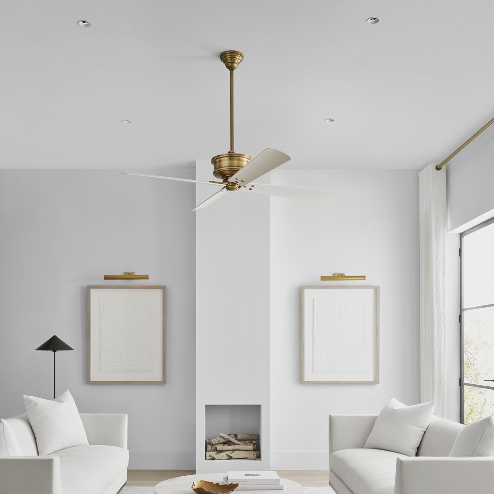 • Visual Comfort Avila Matte White Blades Satin Brass Steel LED Ceiling Fan - 54"|Kathy Kuo Home