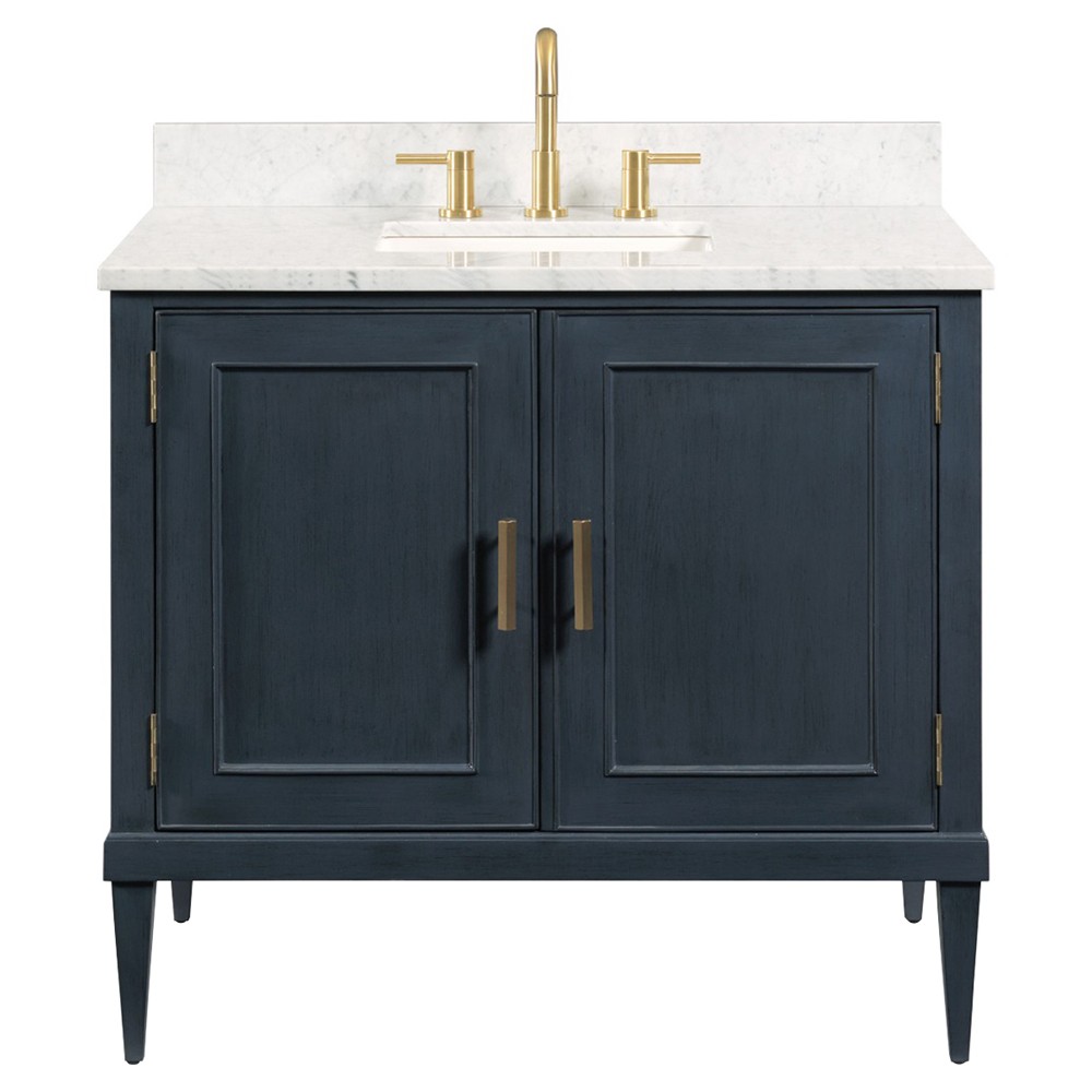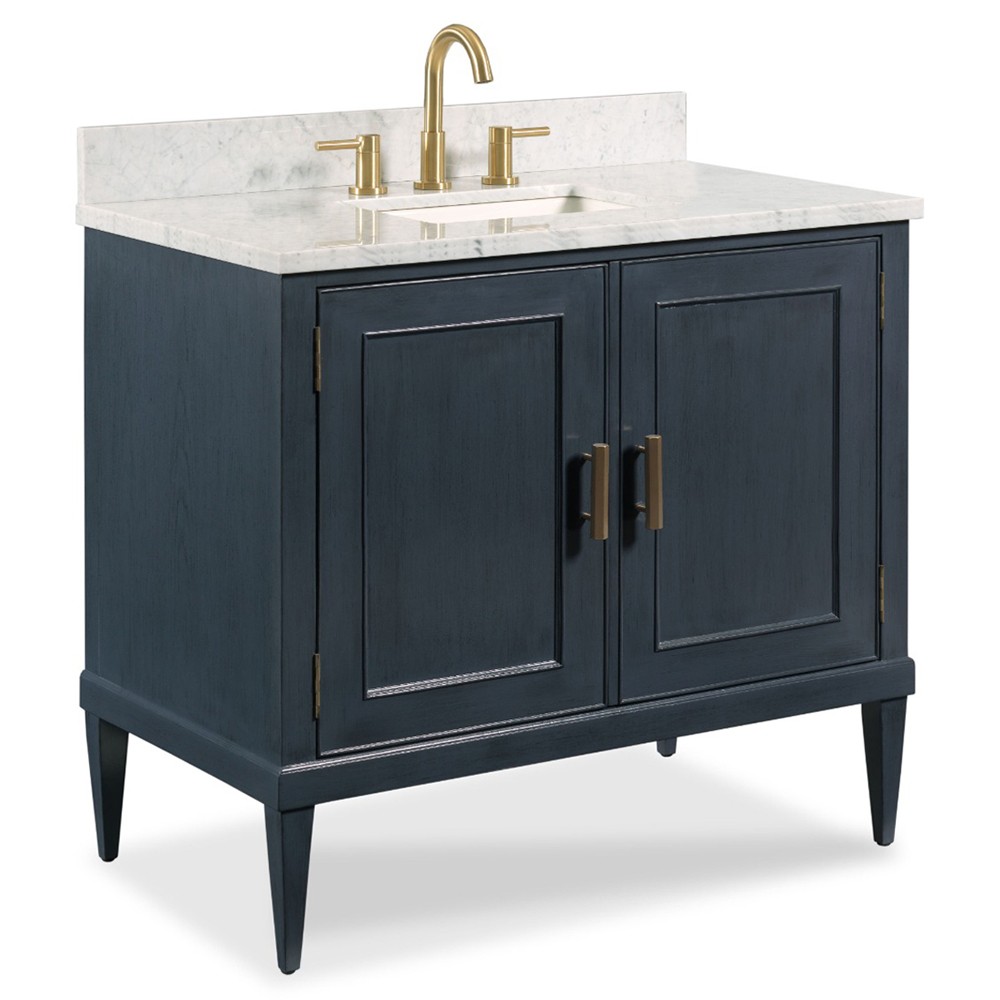 Cerise Updated Traditional White Marble Blue Oak Wood Vanity Sink - 37"
