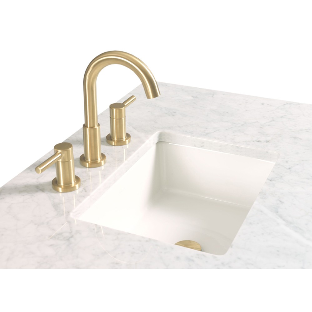 • Cynthia Modern Classic Carrara Marble Bleached Oak Wide Vanity Sink - 48"|Kathy Kuo Home