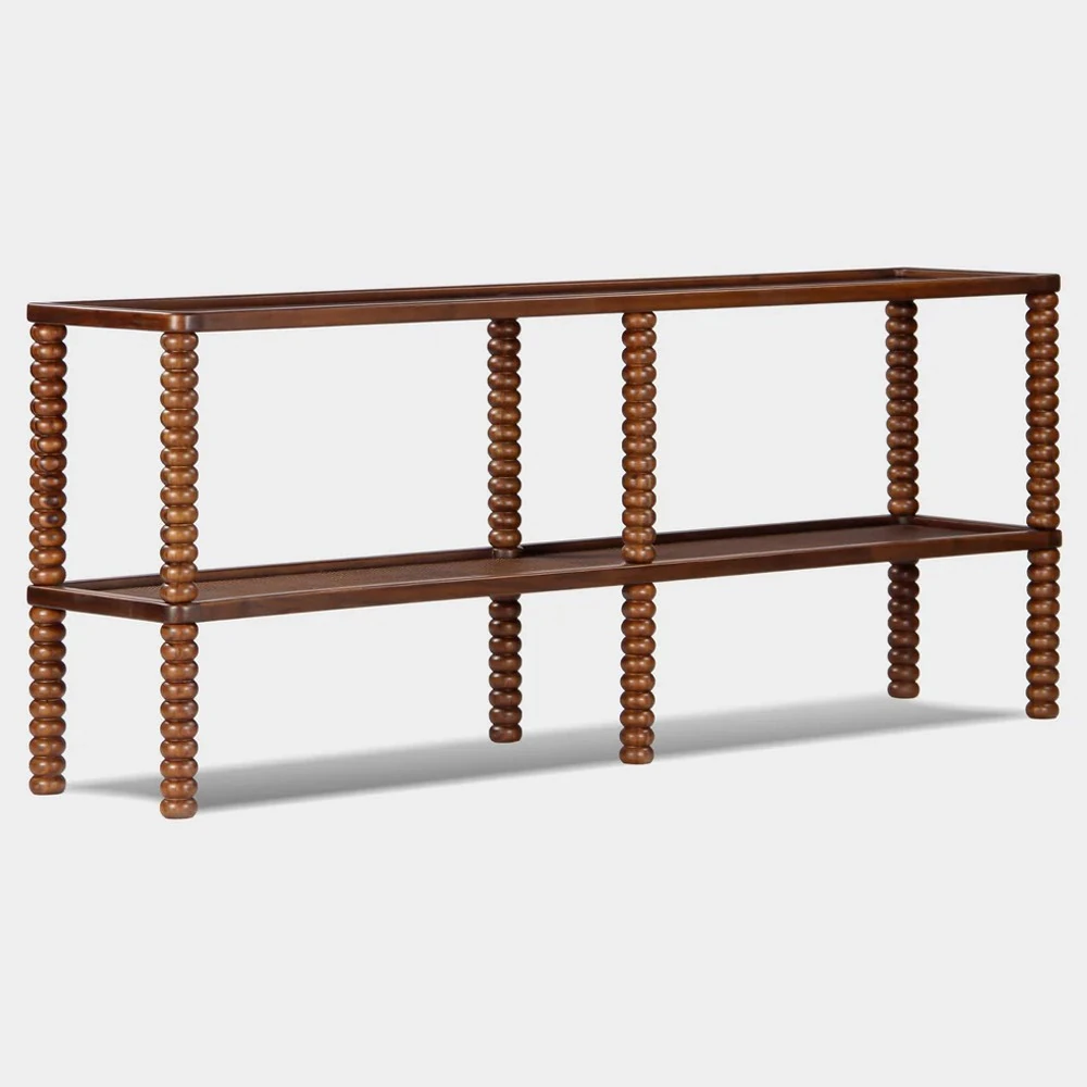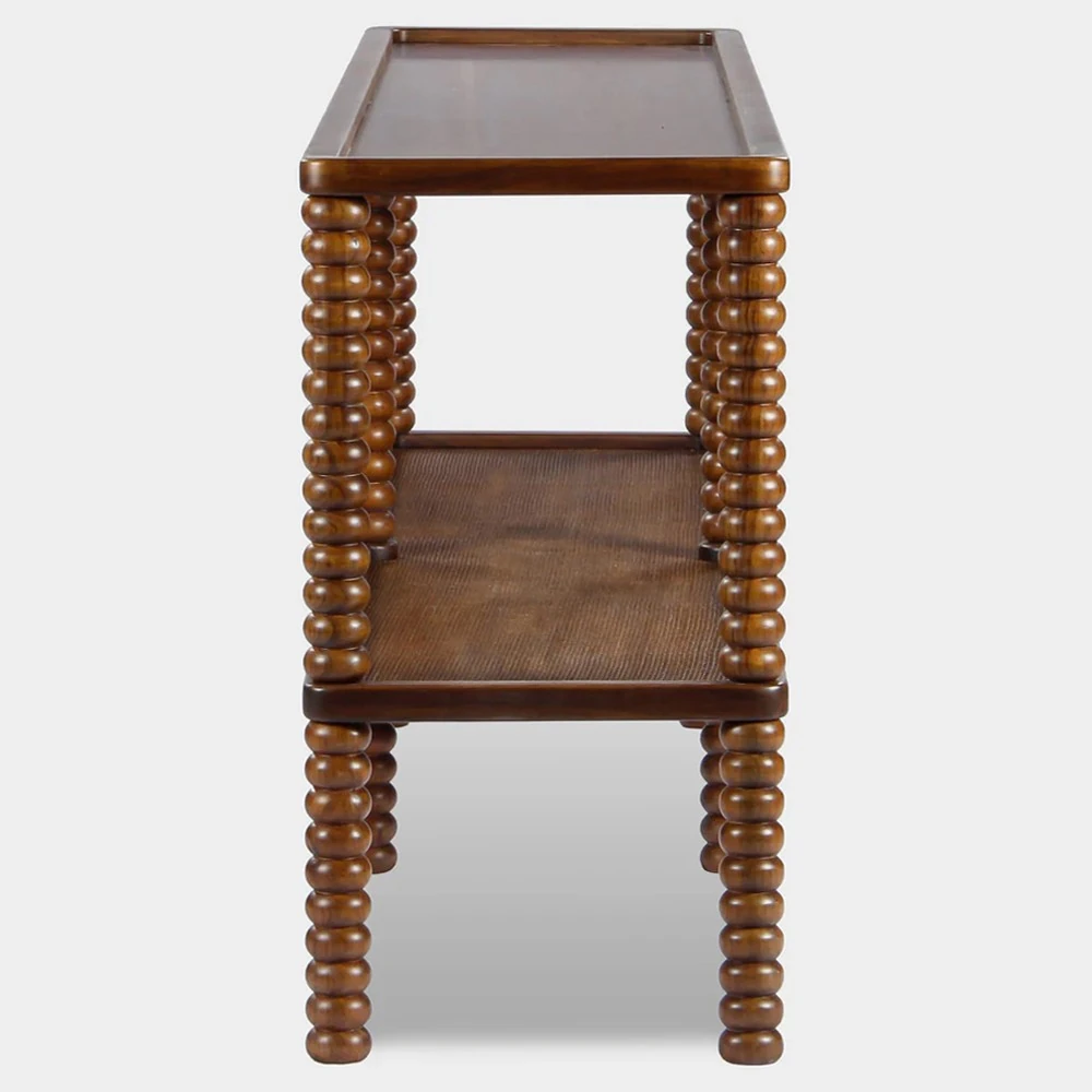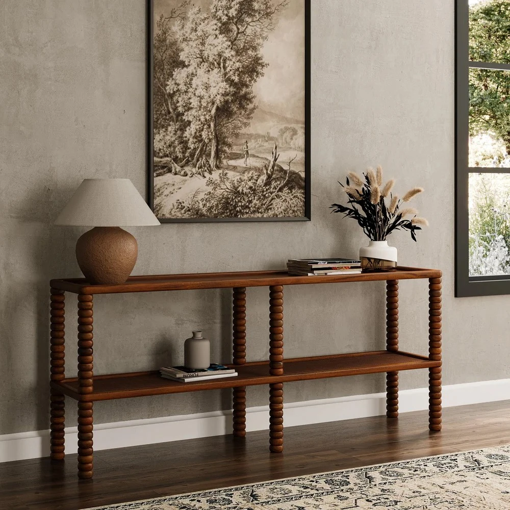 Tobi Updated Traditional Brown Oak Spindle Rectangular Console Table