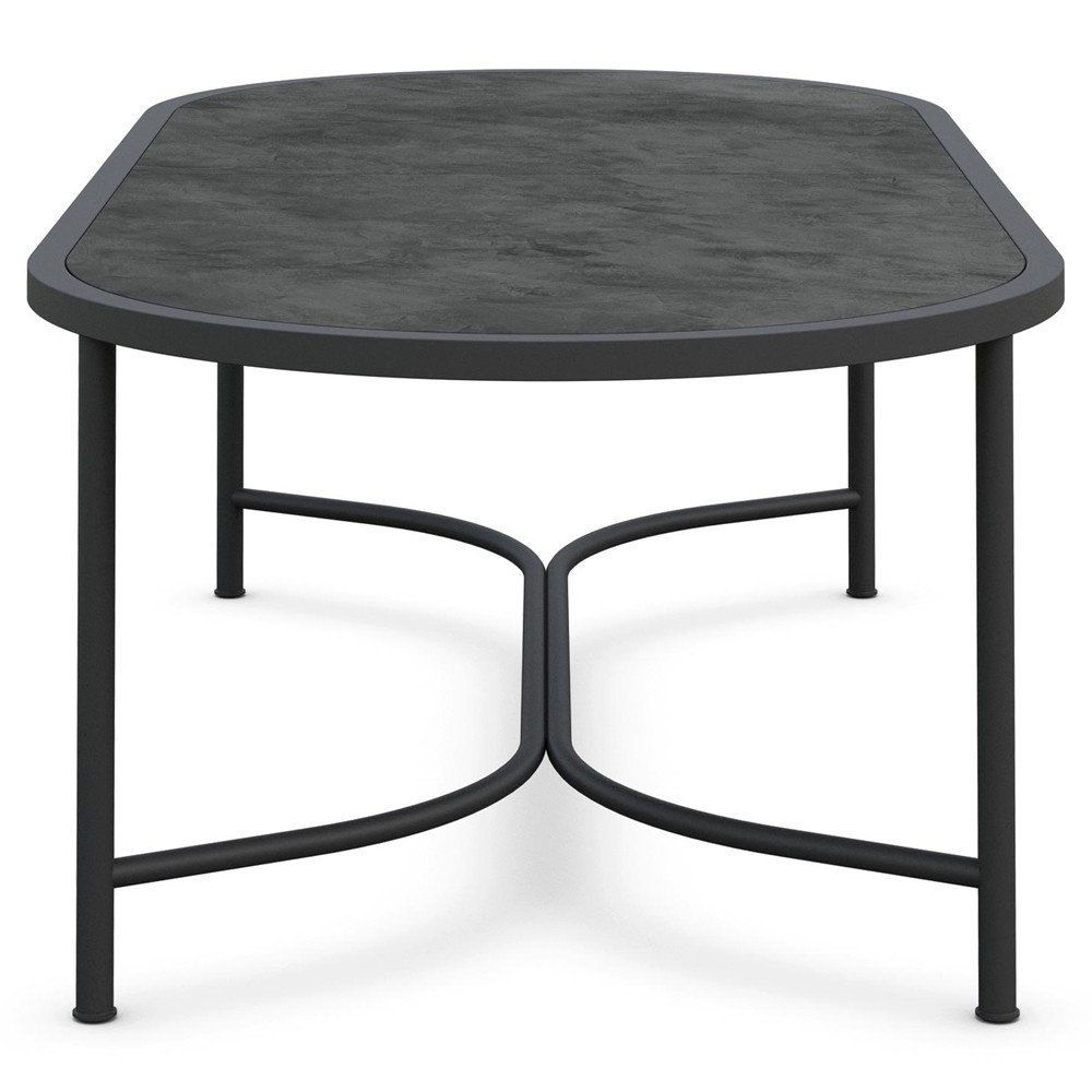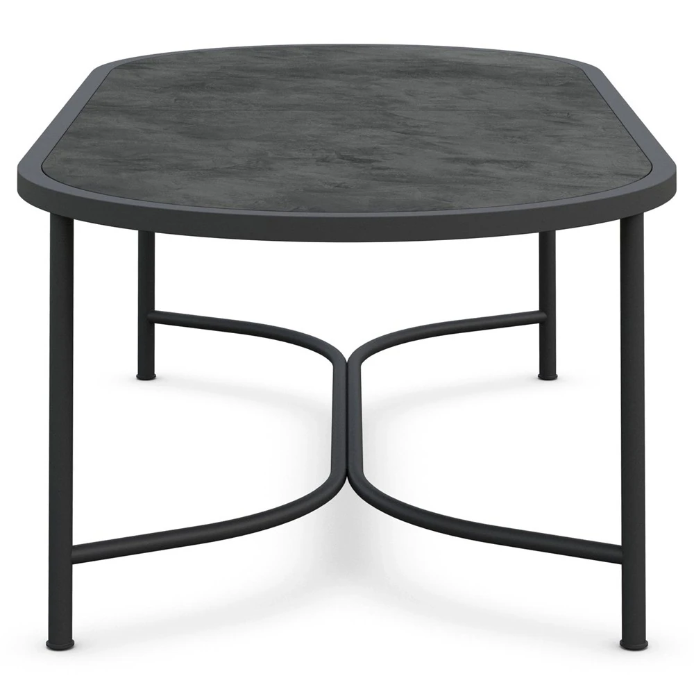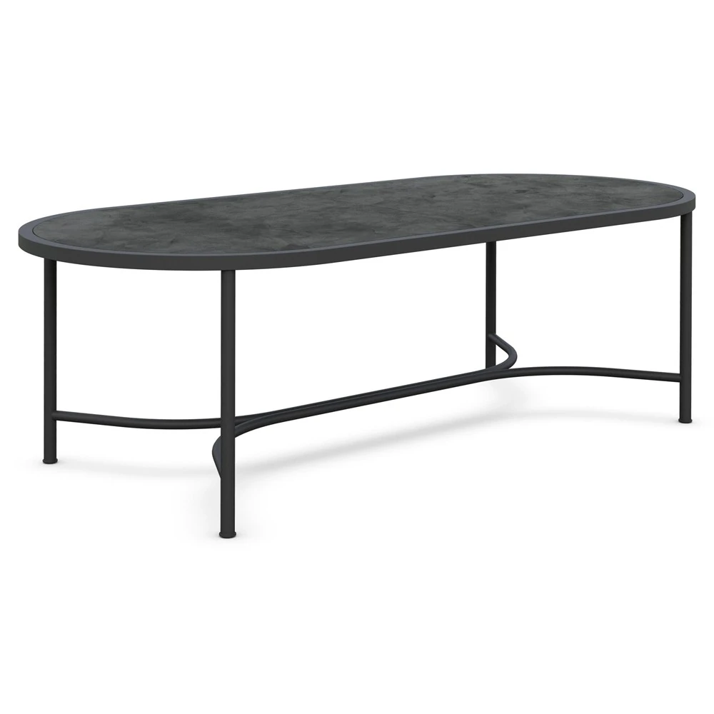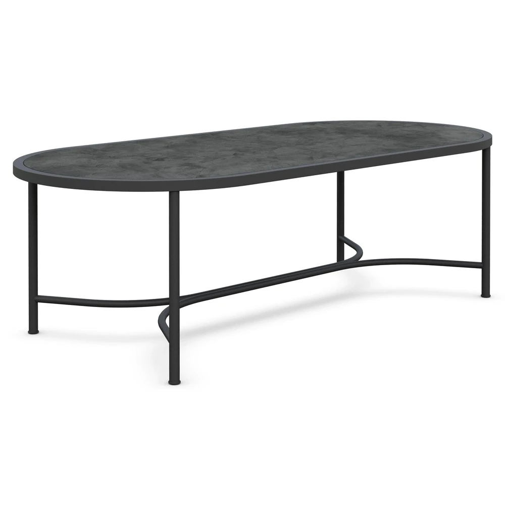 Emeline Micron Dekton Black Iron Oval Outdoor Dining Table - 96"
