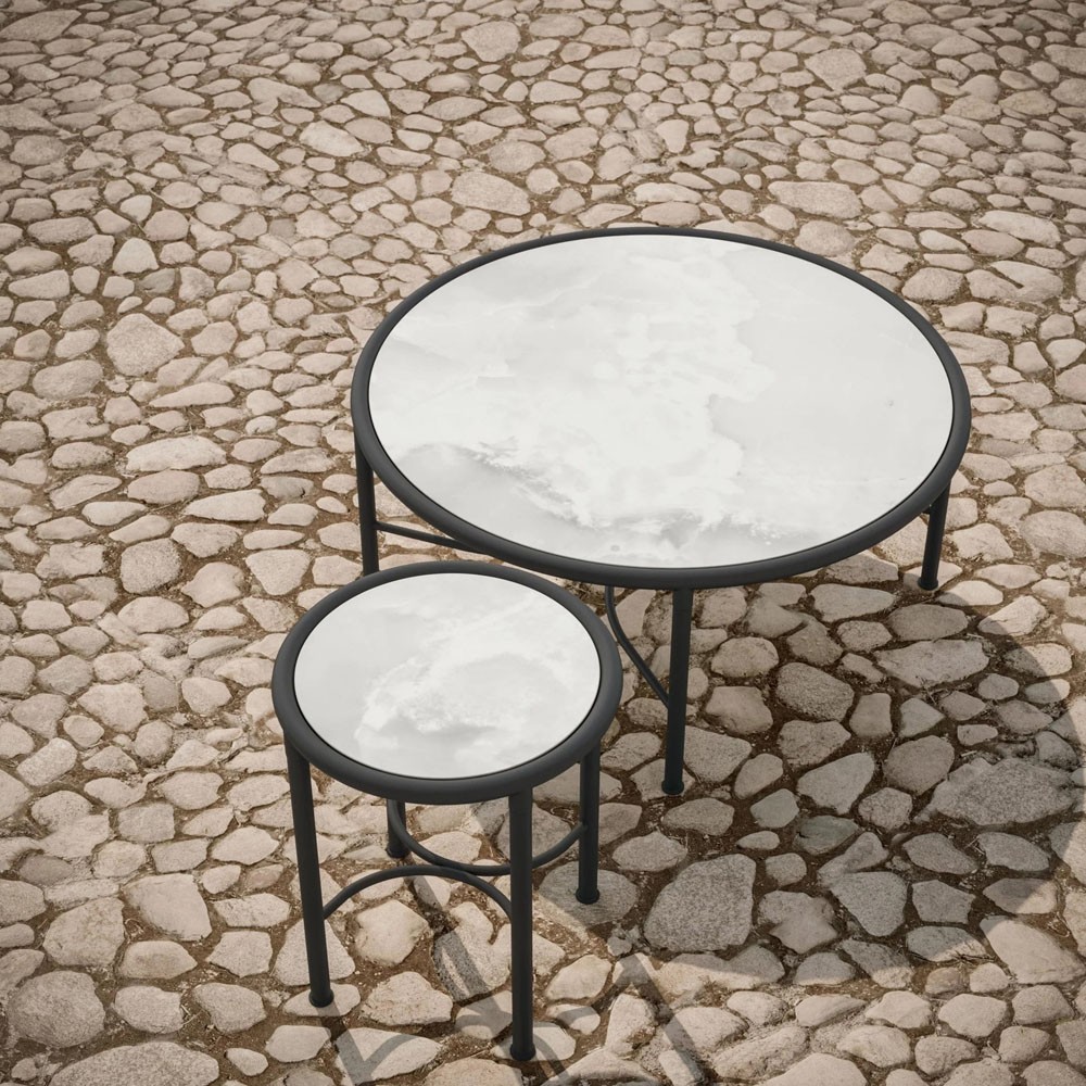 Emeline Helena Dekton Black Iron Outdoor Round Side Table