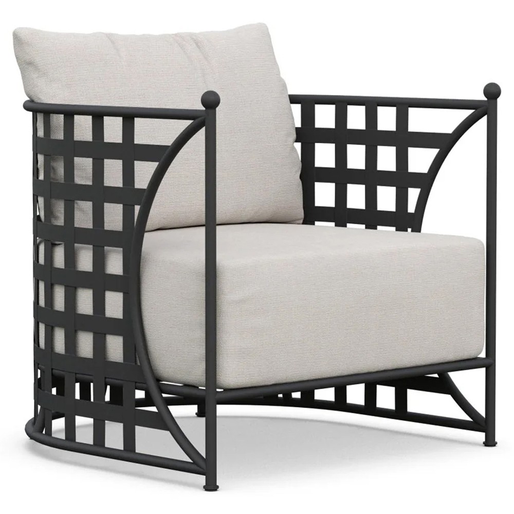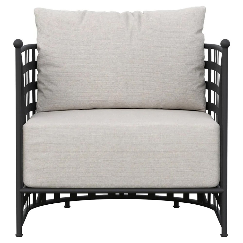 • Emeline Cream Upholstered Black Iron Outdoor Lounge Chair|Kathy Kuo Home