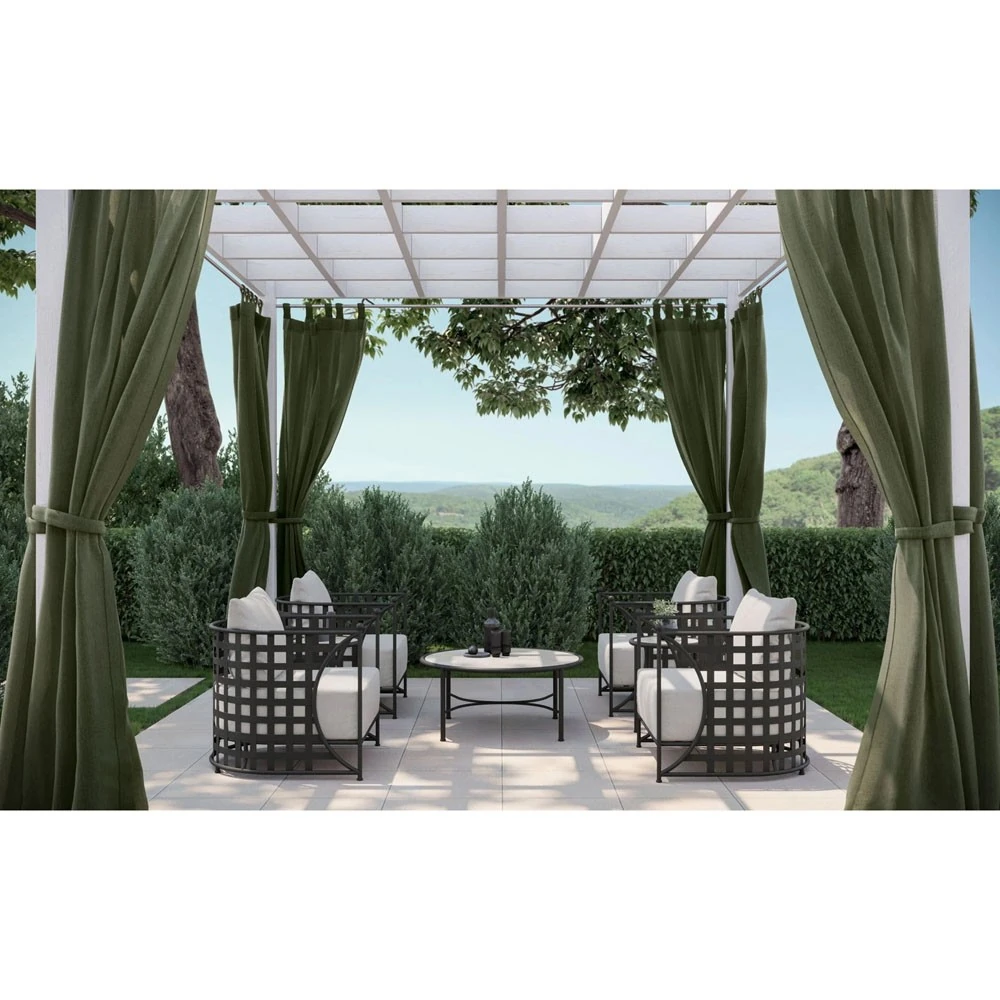 • Features water, UV, mildew, stain, and rust resistant metal frame