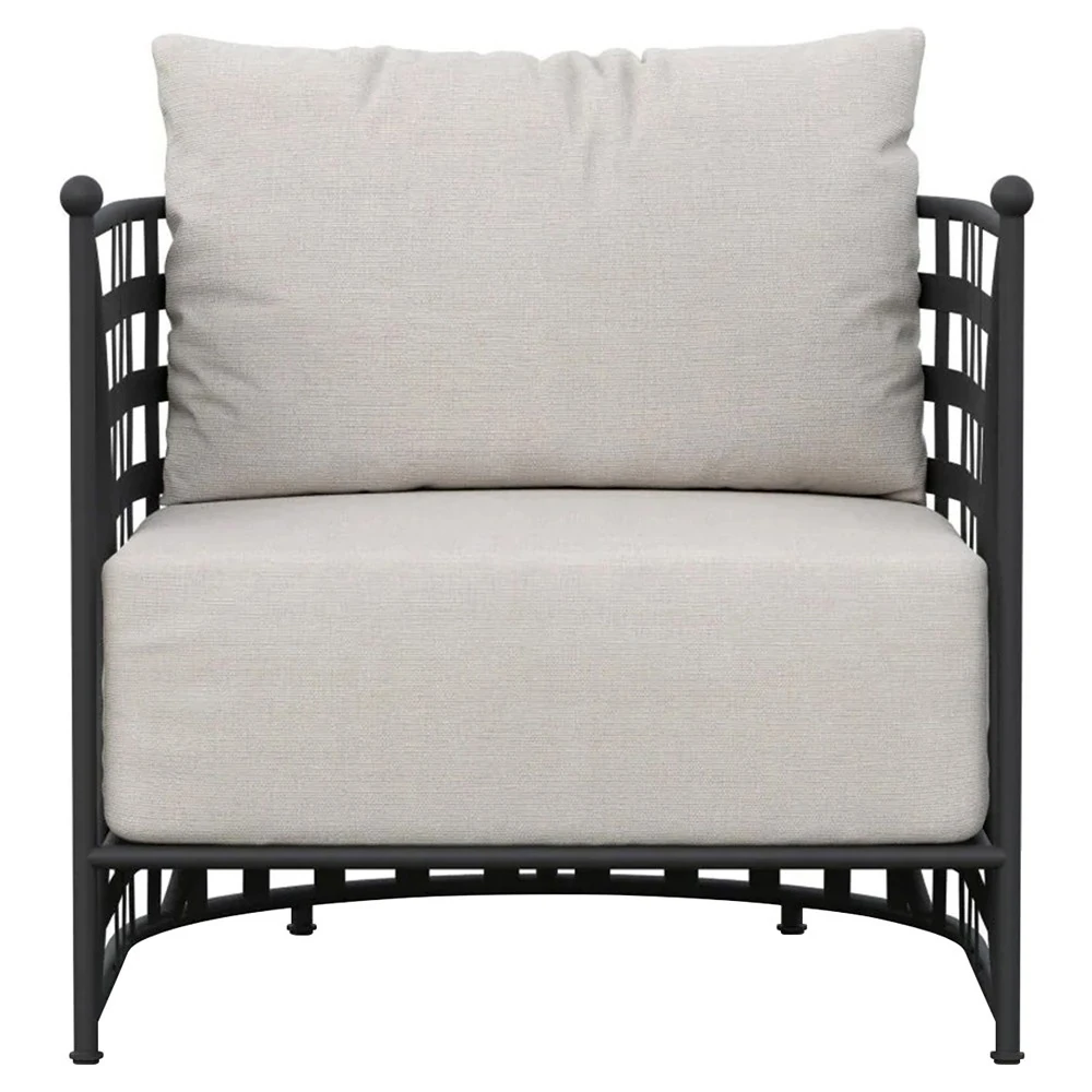 • Aurore Cream Cushion Black Welt Metal Outdoor Club Arm Chair|Kathy Kuo Home