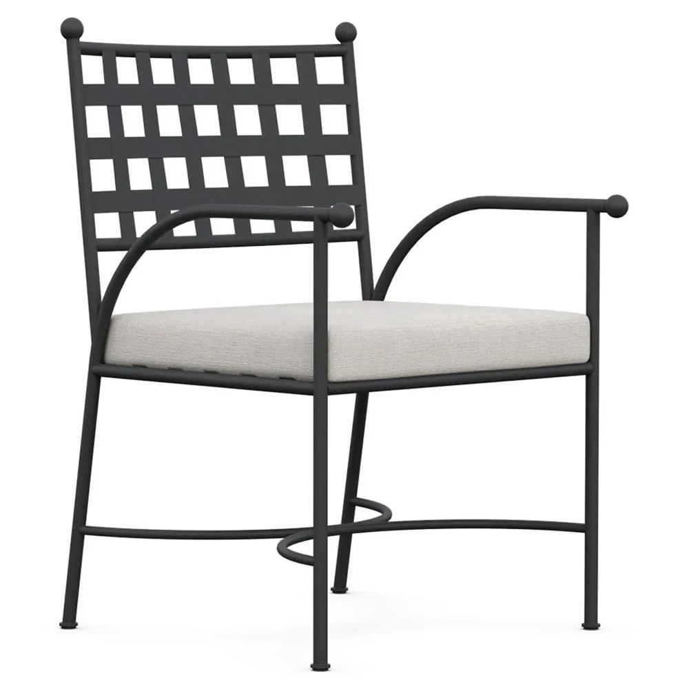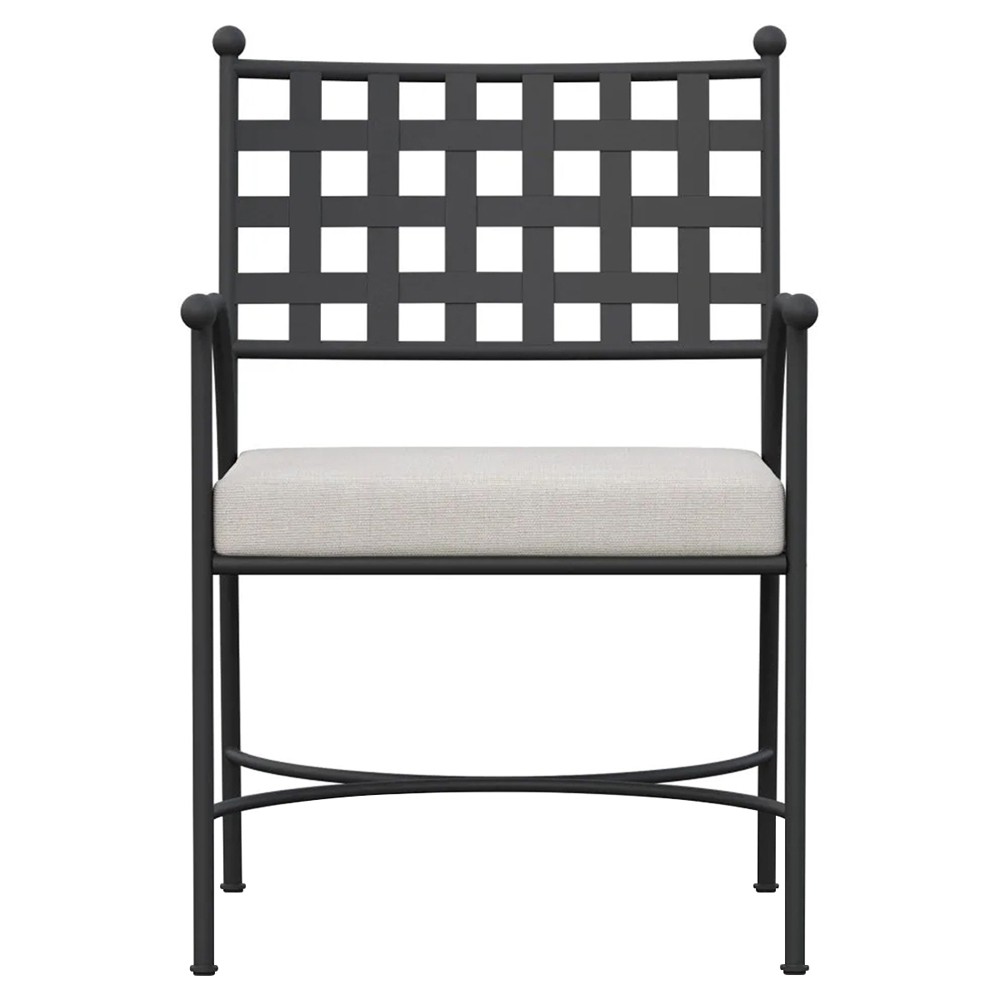 Emeline Cream Upholstered Black Iron Outdoor Dining Arm Chair