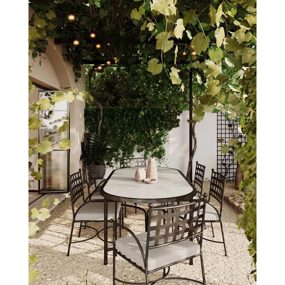Emeline Albarium Dekton Black Iron Oval Outdoor Dining Table - 96"