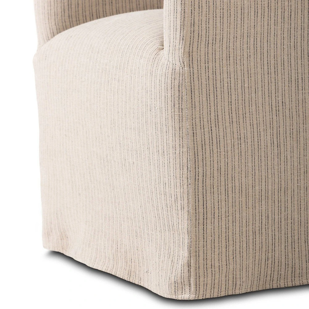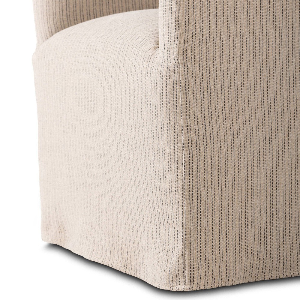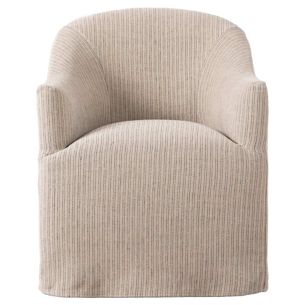 Desiree French Country Beige Striped Slipcovered Dining Arm Chair