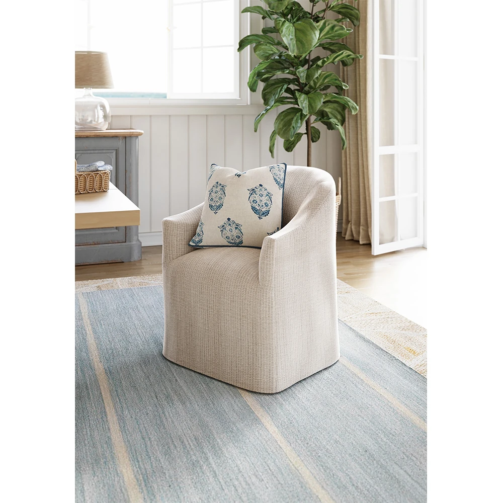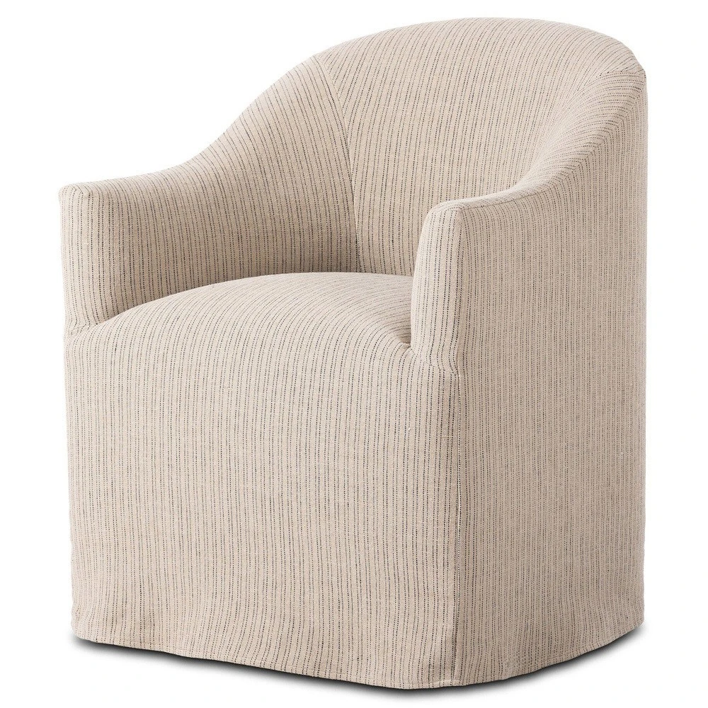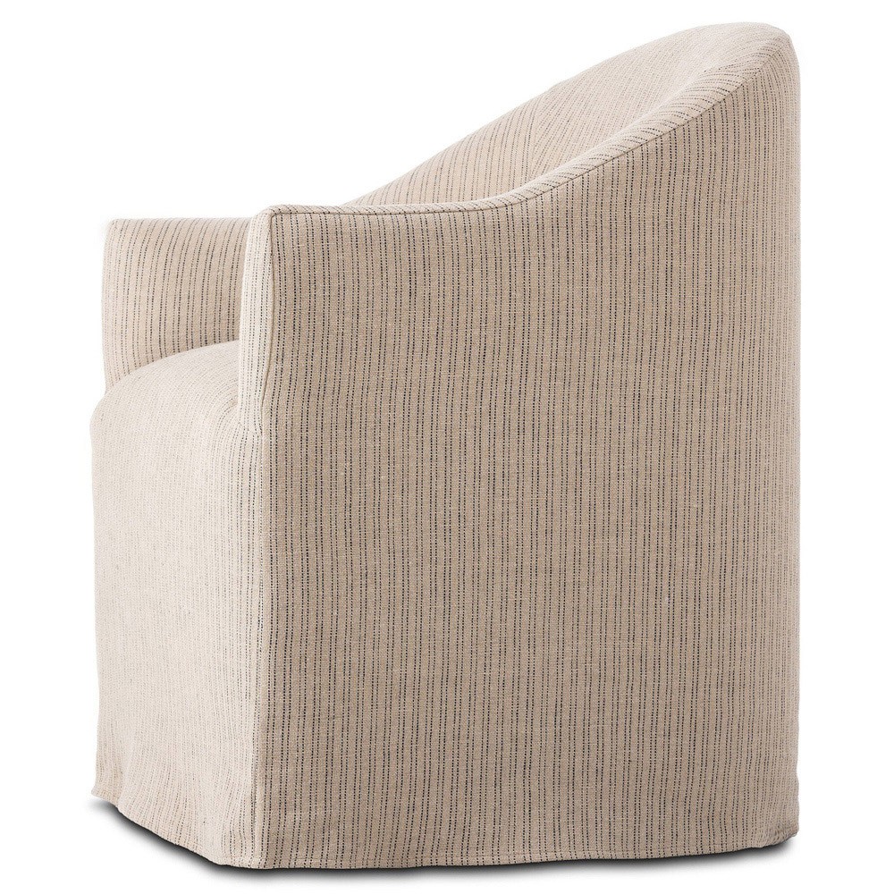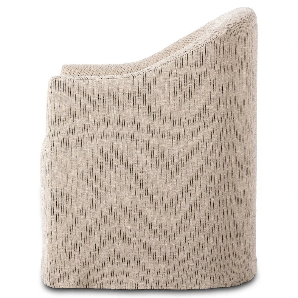 Desiree French Country Beige Striped Slipcovered Dining Arm Chair