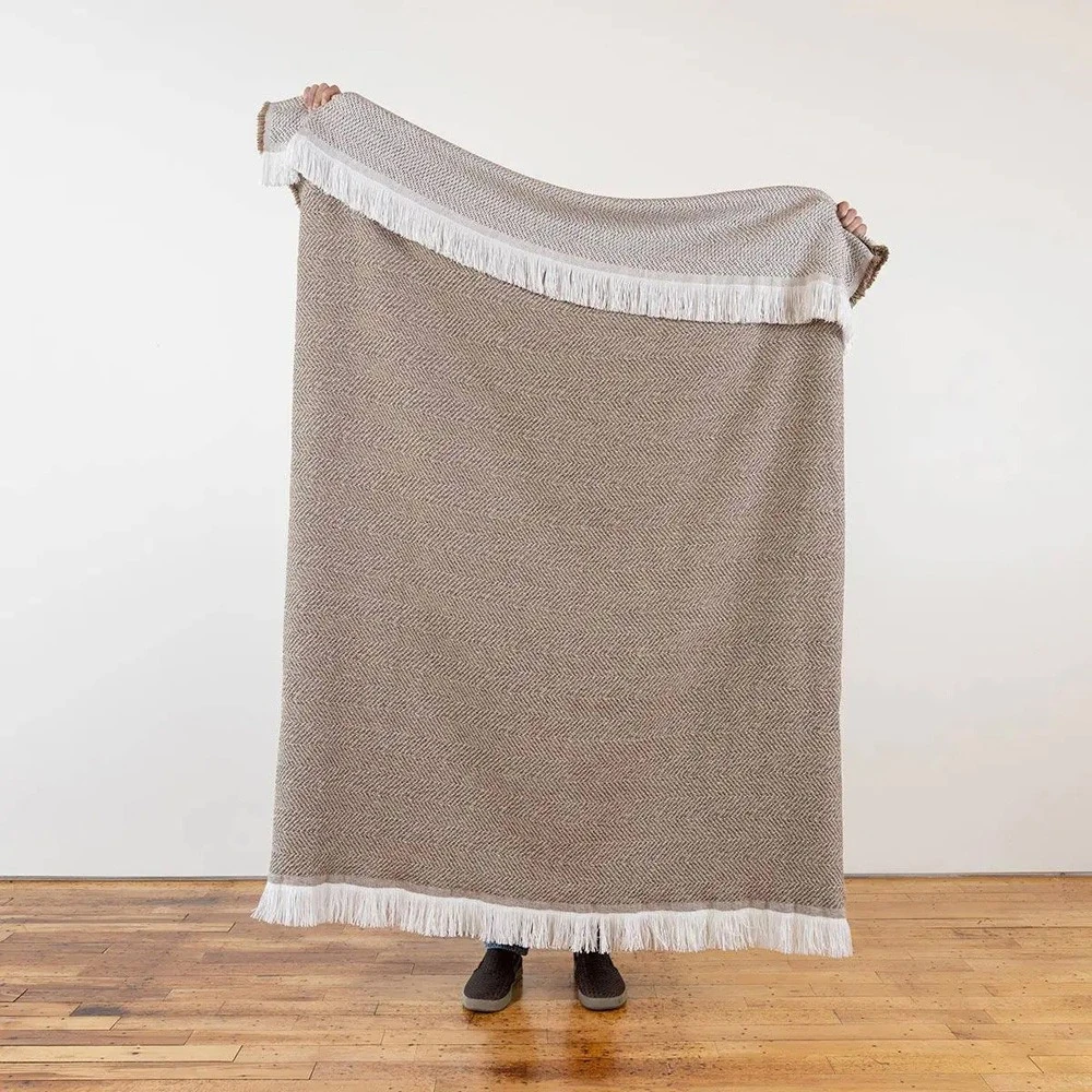 Yasmin Modern Classic Light Brown Alpaca Woven Throw Blanket