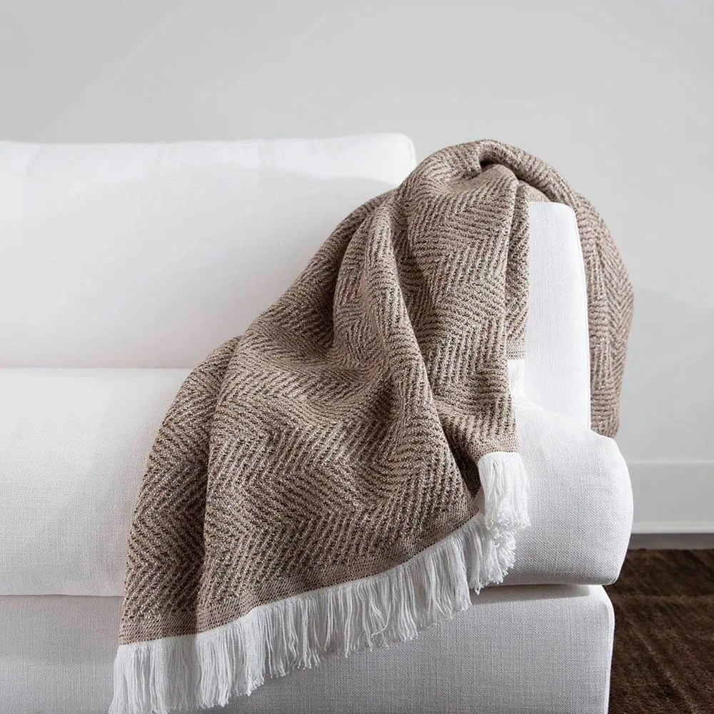 Wells Brown Herringbone Textured Indoor / Outdoor Throw Blanket