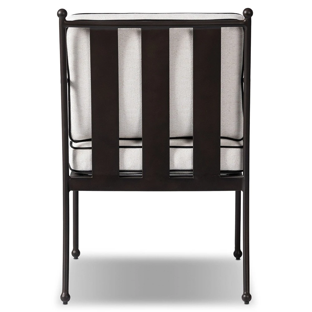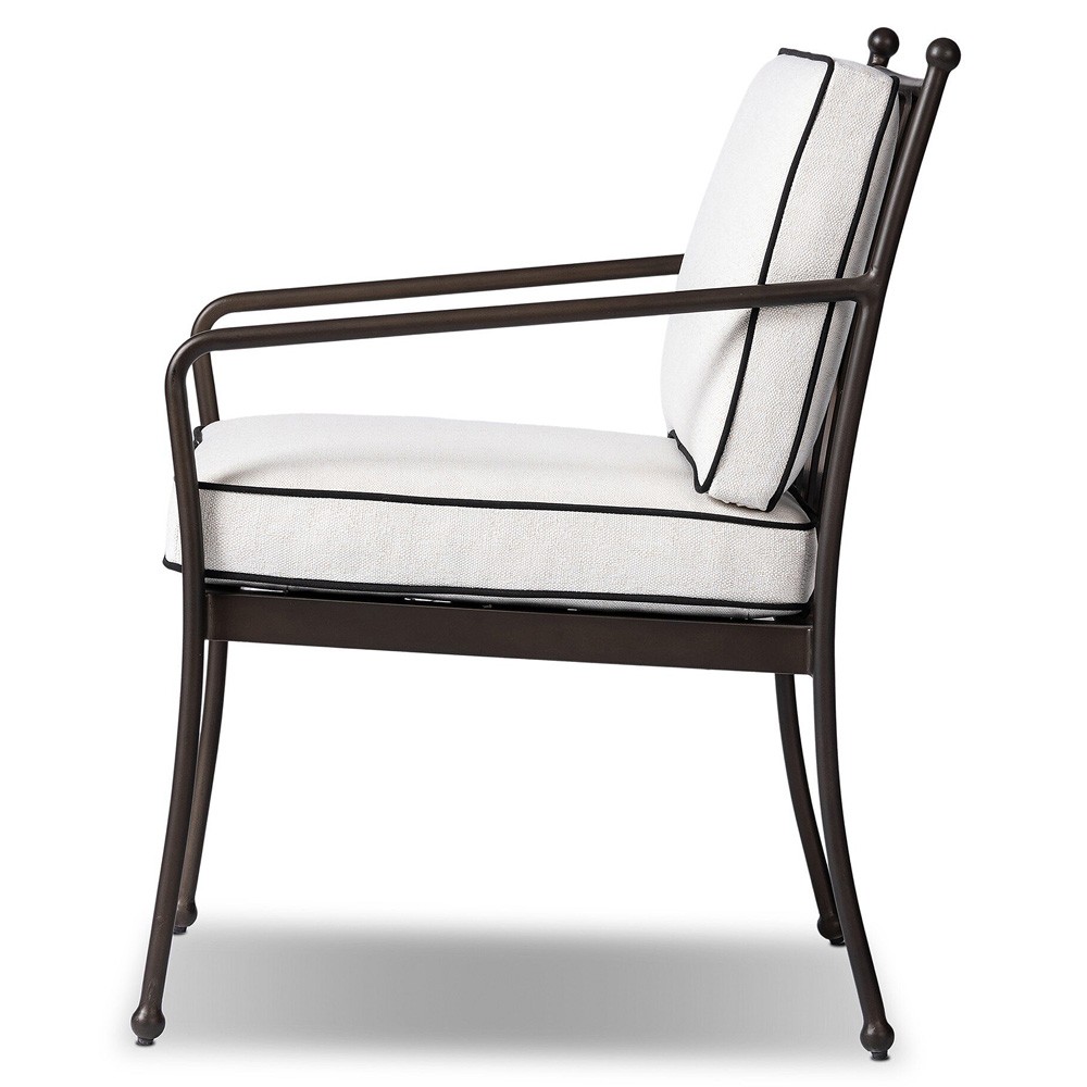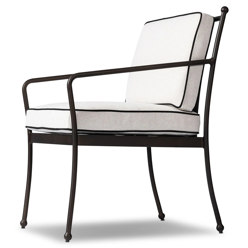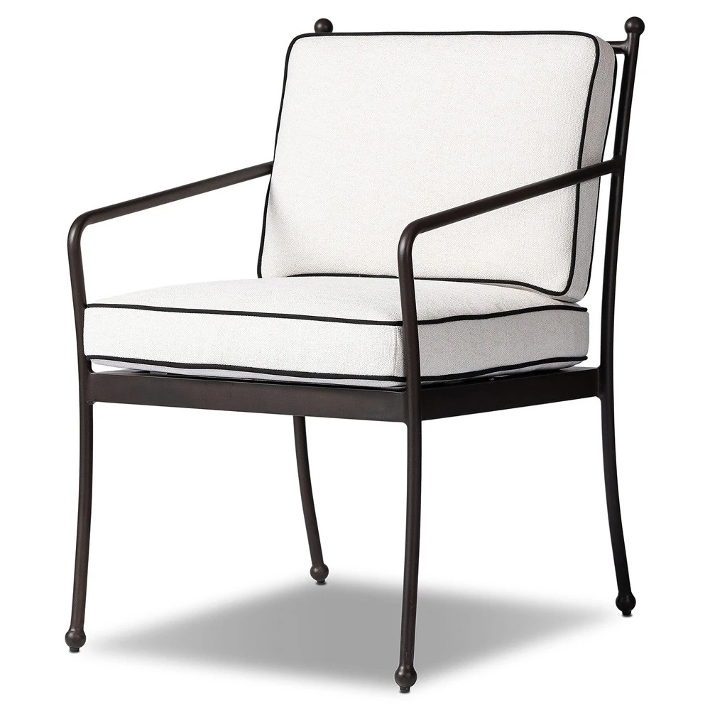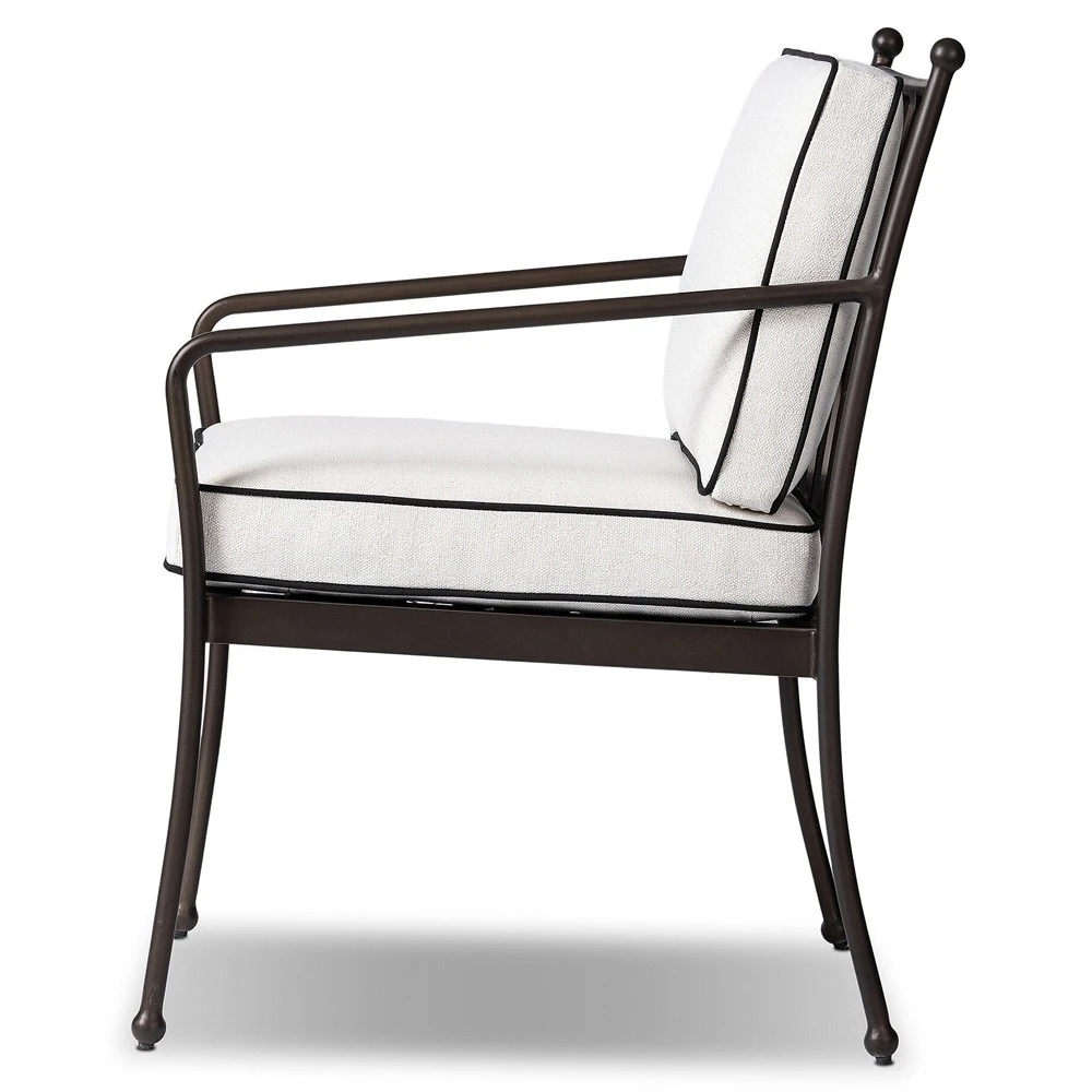 Aurore Cream Cushion Black Welt Metal Outdoor Dining Arm Chair