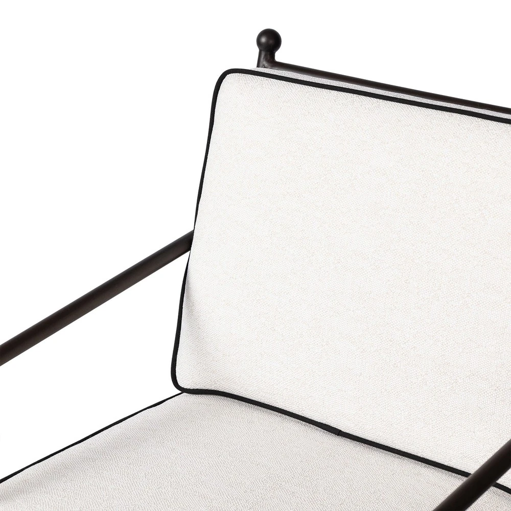 Gretchen French Country White Upholstered Black Welt Aluminum Outdoor Lounge Chair